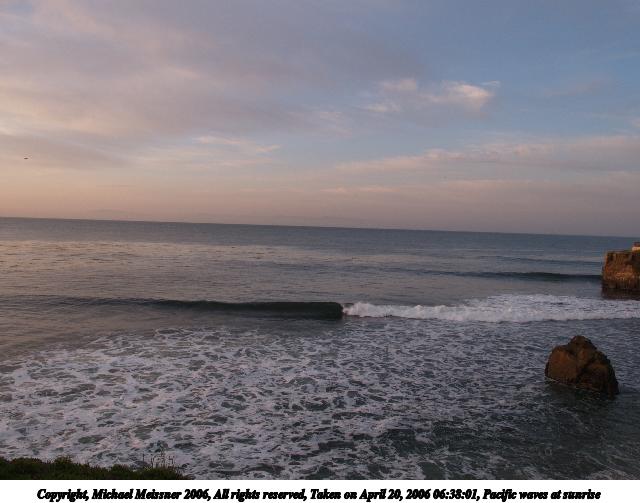 Picture #2: Pacific waves at dawn 640x503, 80,827 bytes (79K), (html file) Copyright, Michael Meissner 2006, All rights reserved Olympus E-1 camera with Olympus 50-200mm f/2.8-3.5 lens and Olympus EC-14 (1.4x) f/4.5, ISO 100, 1/200 sec, 70.0mm, auto mode, SHQ, matrix metering, +2 sharpening 35mm equivalent focal length 140.0mm, EC-14 Taken by Michael Meissner on April 18, 2006 06:41:09 Last modified on April 22, 2006 at 13:05 |