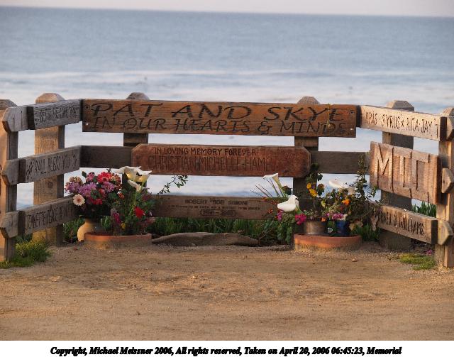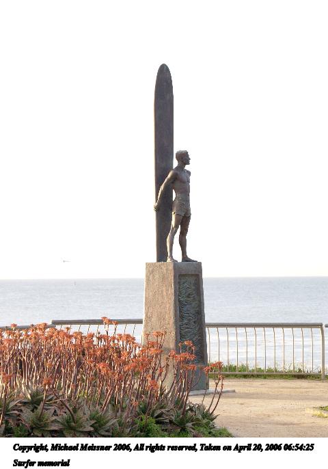 Picture #9: Surfer memorial 480x686, 51,733 bytes (51K), (html file) Copyright, Michael Meissner 2006, All rights reserved Olympus E-1 camera with Olympus 50-200mm f/2.8-3.5 lens f/5.6, ISO 400, FL-50 flash, 1/160 sec, 76.0mm, auto mode, SHQ, spot metering, +2 sharpening 35mm equivalent focal length 152.0mm Extra equipment used: Fl-50 flash Taken by Michael Meissner on April 20, 2006 06:54:25 Last modified on April 23, 2006 at 03:06 |