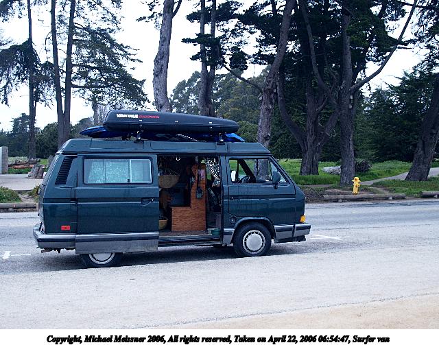 Picture #17: Surfer van 640x503, 101,886 bytes (100K), (html file) Copyright, Michael Meissner 2006, All rights reserved Olympus E-1 camera with Olympus 11-22mm f/2.8-3.5 lens f/3.5, ISO 200, 1/30 sec, 22.0mm, auto mode, SHQ, matrix metering, +2 sharpening 35mm equivalent focal length 44.0mm Taken by Michael Meissner on April 22, 2006 06:54:47 Last modified on April 22, 2006 at 10:33 |