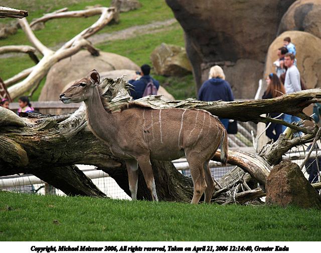 Picture #2: Greater Kudu #2 640x503, 88,717 bytes (87K), (html file) Copyright, Michael Meissner 2006, All rights reserved Olympus E-1 camera with Olympus 50-200mm f/2.8-3.5 lens f/4.0, ISO 100, 1/250 sec, 169.0mm, auto mode, SHQ, matrix metering, +2 sharpening 35mm equivalent focal length 339.0mm Taken by Michael Meissner on April 21, 2006 12:14:40 Last modified on May 23, 2006 at 22:08 |