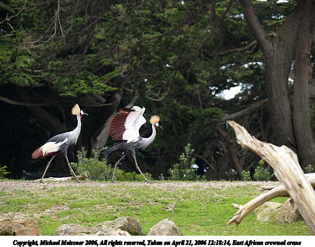 Picture #3: East African crowned crane #3 640x503, 103,422 bytes (101K), (html file) Copyright, Michael Meissner 2006, All rights reserved Olympus E-1 camera with Olympus 50-200mm f/2.8-3.5 lens f/5.6, ISO 400, 1/500 sec, 182.0mm, auto mode, SHQ, matrix metering, +2 sharpening 35mm equivalent focal length 365.0mm Taken by Michael Meissner on April 21, 2006 12:55:48 Last modified on April 21, 2006 at 20:48 |