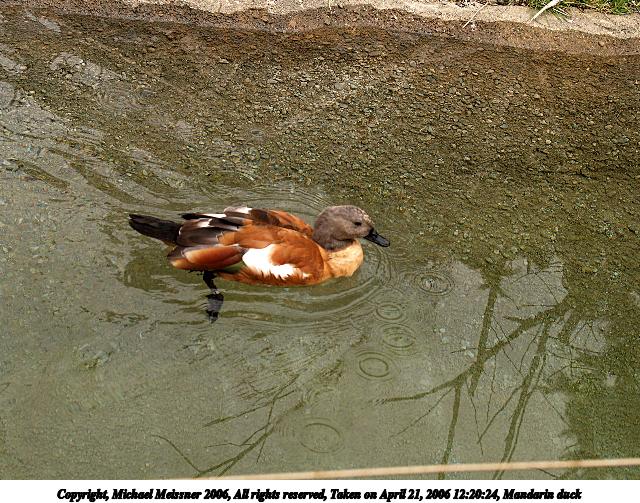 Picture #2: Mandarin duck #2 640x503, 110,158 bytes (108K), (html file) Copyright, Michael Meissner 2006, All rights reserved Olympus E-1 camera with Olympus 50-200mm f/2.8-3.5 lens f/5.6, ISO 200, 1/500 sec, 50.0mm, auto mode, SHQ, matrix metering, +2 sharpening 35mm equivalent focal length 100.0mm Taken by Michael Meissner on April 21, 2006 12:20:24 Last modified on April 21, 2006 at 20:46 |