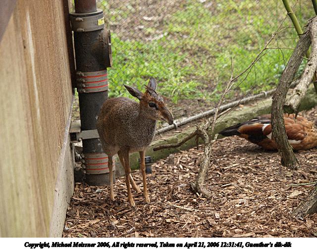 Picture #1: Guenther's dik-dik 640x503, 106,382 bytes (104K), (html file) Copyright, Michael Meissner 2006, All rights reserved Olympus E-1 camera with Olympus 50-200mm f/2.8-3.5 lens f/4.0, ISO 400, 1/400 sec, 104.0mm, auto mode, SHQ, matrix metering, +2 sharpening 35mm equivalent focal length 208.0mm Taken by Michael Meissner on April 21, 2006 12:31:41 Last modified on April 21, 2006 at 20:47 |