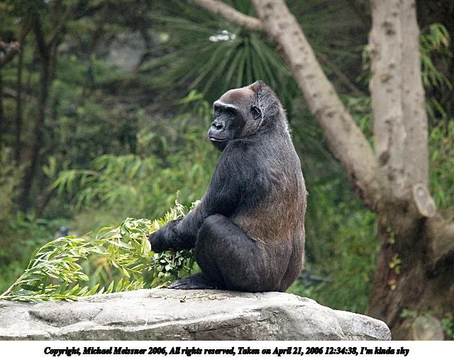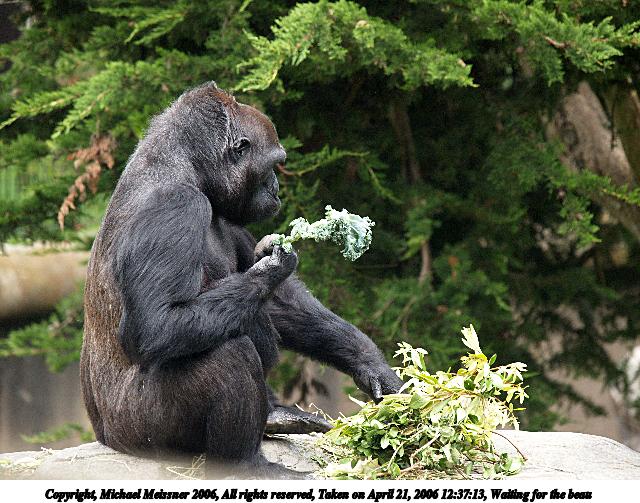 Picture #2: Western lowland gorilla #2 640x503, 80,449 bytes (79K), (html file) Copyright, Michael Meissner 2006, All rights reserved Olympus E-1 camera with Olympus 50-200mm f/2.8-3.5 lens f/5.0, ISO 400, 1/400 sec, 200.0mm, auto mode, SHQ, matrix metering, +2 sharpening 35mm equivalent focal length 401.0mm Taken by Michael Meissner on April 21, 2006 12:34:36 Last modified on April 21, 2006 at 20:47 |
