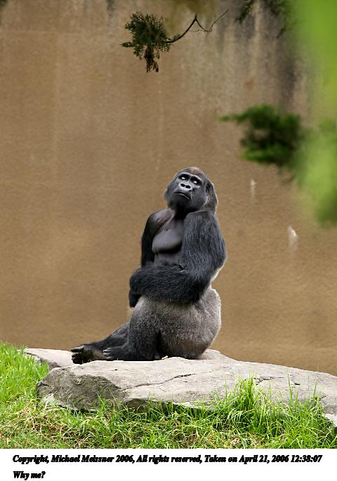 Picture #7: Why me? 480x686, 68,036 bytes (67K), (html file) Copyright, Michael Meissner 2006, All rights reserved Olympus E-1 camera with Olympus 50-200mm f/2.8-3.5 lens f/5.0, ISO 400, 1/400 sec, 200.0mm, auto mode, SHQ, matrix metering, +2 sharpening 35mm equivalent focal length 401.0mm Taken by Michael Meissner on April 21, 2006 12:38:07 Last modified on April 21, 2006 at 20:47 |