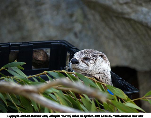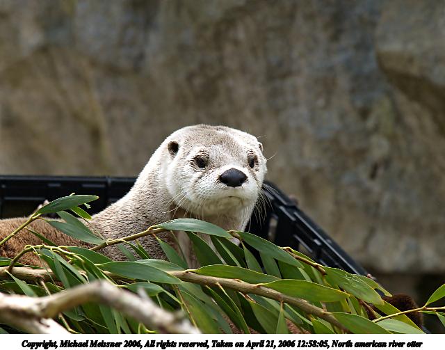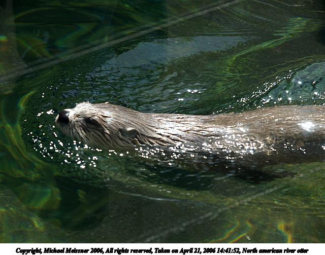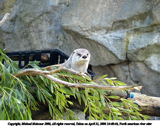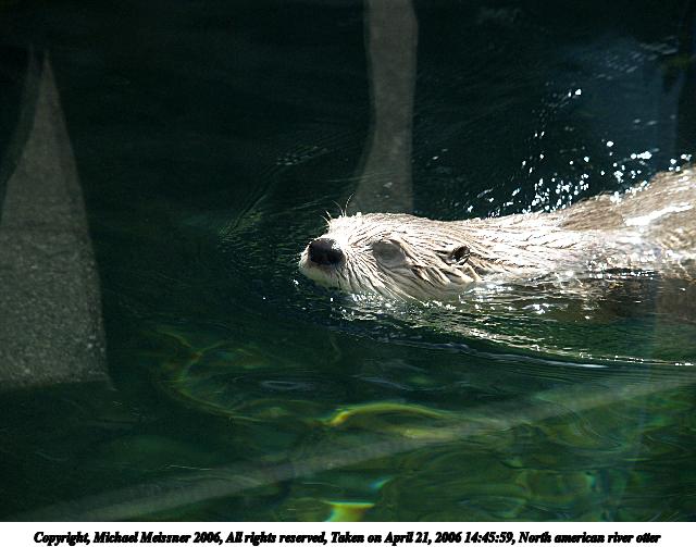 Picture #2: North american river otter #2 640x503, 90,126 bytes (89K), (html file) Copyright, Michael Meissner 2006, All rights reserved Olympus E-1 camera with Olympus 50-200mm f/2.8-3.5 lens f/3.2, ISO 200, 1/200 sec, 108.0mm, auto mode, SHQ, matrix metering, bias 0.7, +2 sharpening 35mm equivalent focal length 216.0mm Taken by Michael Meissner on April 21, 2006 14:40:44 Last modified on April 21, 2006 at 20:50 |