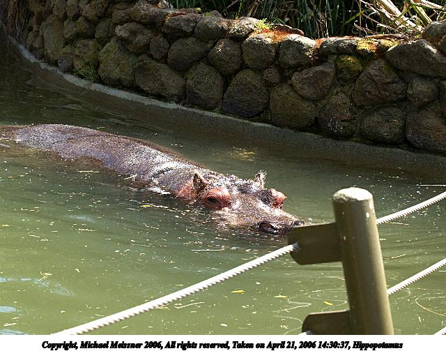 Picture #3: Hippopotamus #3 640x503, 101,527 bytes (100K), (html file) Copyright, Michael Meissner 2006, All rights reserved Olympus E-1 camera with Olympus 50-200mm f/2.8-3.5 lens f/5.6, ISO 200, 1/500 sec, 54.0mm, auto mode, SHQ, matrix metering, +2 sharpening 35mm equivalent focal length 108.0mm Taken by Michael Meissner on April 21, 2006 14:30:47 Last modified on April 21, 2006 at 20:49 |