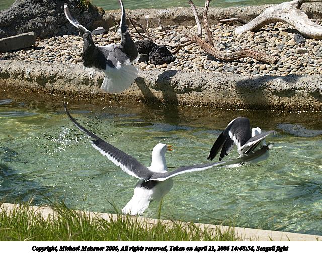 Picture #3: Seagull fight #3 640x503, 79,389 bytes (78K), (html file) Copyright, Michael Meissner 2006, All rights reserved Olympus E-1 camera with Olympus 50-200mm f/2.8-3.5 lens f/7.1, ISO 200, 1/1000 sec, 117.0mm, auto mode, SHQ, matrix metering, +2 sharpening 35mm equivalent focal length 234.0mm Taken by Michael Meissner on April 21, 2006 14:48:50 Last modified on April 21, 2006 at 20:50 |