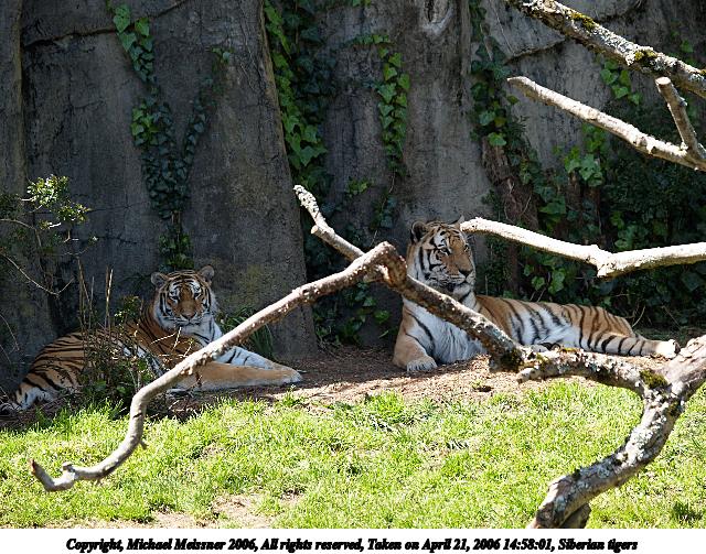 Picture #2: Siberian tigers 640x503, 117,340 bytes (115K), (html file) Copyright, Michael Meissner 2006, All rights reserved Olympus E-1 camera with Olympus 50-200mm f/2.8-3.5 lens f/4.5, ISO 200, 1/400 sec, 104.0mm, auto mode, SHQ, matrix metering, +2 sharpening 35mm equivalent focal length 208.0mm Taken by Michael Meissner on April 21, 2006 14:58:01 Last modified on April 21, 2006 at 20:51 |
