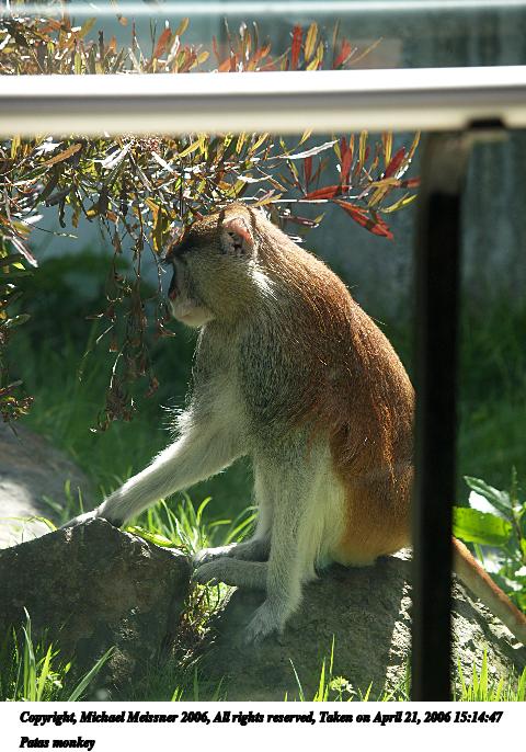 Picture #2: Patas monkey #2 480x686, 85,862 bytes (84K), (html file) Copyright, Michael Meissner 2006, All rights reserved Olympus E-1 camera with Olympus 50-200mm f/2.8-3.5 lens f/3.2, ISO 100, 1/250 sec, 108.0mm, auto mode, SHQ, matrix metering, +2 sharpening 35mm equivalent focal length 216.0mm Extra equipment used: shot through glass Taken by Michael Meissner on April 21, 2006 15:14:47 Last modified on May 29, 2006 at 11:06 |