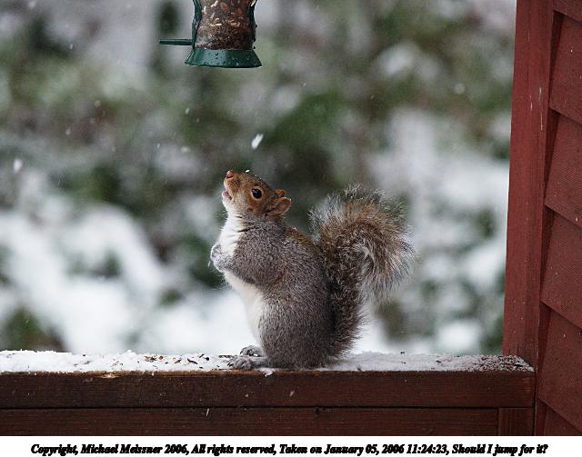 Picture #1: Should I jump for it? 640x503, 60,583 bytes (60K), (html file) Copyright, Michael Meissner 2006, All rights reserved Olympus E-1 camera with Olympus 50-200mm f/2.8-3.5 lens f/3.5, ISO 400, 1/250 sec, 137.0mm, auto mode, SHQ, matrix metering, +2 sharpening 35mm equivalent focal length 274.0mm Taken by Michael Meissner on January 05, 2006 11:24:23 Last modified on January 05, 2006 at 22:56 The file originally appeared in http://www.the-meissners.org/2006-small-albums/2006-01/index.html. |