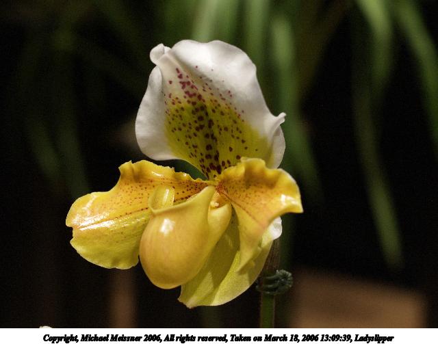 Picture #2: Ladyslipper #2 640x503, 46,489 bytes (46K), (html file) Copyright, Michael Meissner 2006, All rights reserved Olympus E-1 camera with Olympus 50mm f/2.0 lens f/3.2, ISO 400, 1/250 sec, 50.0mm, auto mode, SHQ, manual wb, matrix metering, +2 sharpening 35mm equivalent focal length 100.0mm Extra equipment used: expocap Taken by Michael Meissner on March 18, 2006 13:09:39 Last modified on March 18, 2006 at 17:05 The file originally appeared in http://www.the-meissners.org/2006-small-albums/2006-flowershow/index.html. |
