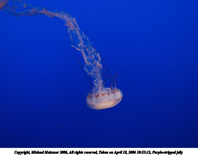 Picture #1: Purple-stripped jelly 640x503, 27,037 bytes (27K), (html file) Copyright, Michael Meissner 2006, All rights reserved Olympus E-1 camera with Olympus 50mm f/2.0 lens f/2.0, ISO 800, 1/80 sec, 50.0mm, auto mode, SHQ, matrix metering, +2 sharpening 35mm equivalent focal length 100.0mm Extra equipment used: neatimage Taken by Michael Meissner on April 18, 2006 10:53:12 Last modified on April 18, 2006 at 22:45 The file originally appeared in http://www.the-meissners.org/2006-small-albums/2006-ca-monterey/index.html. |