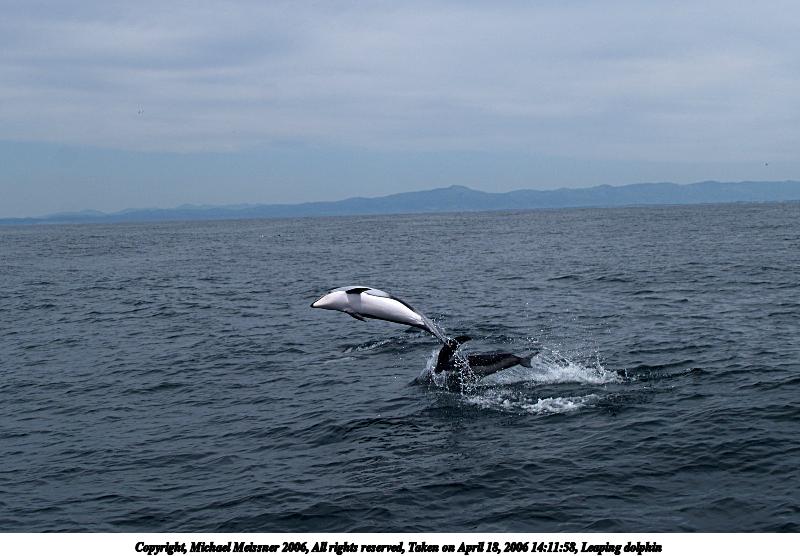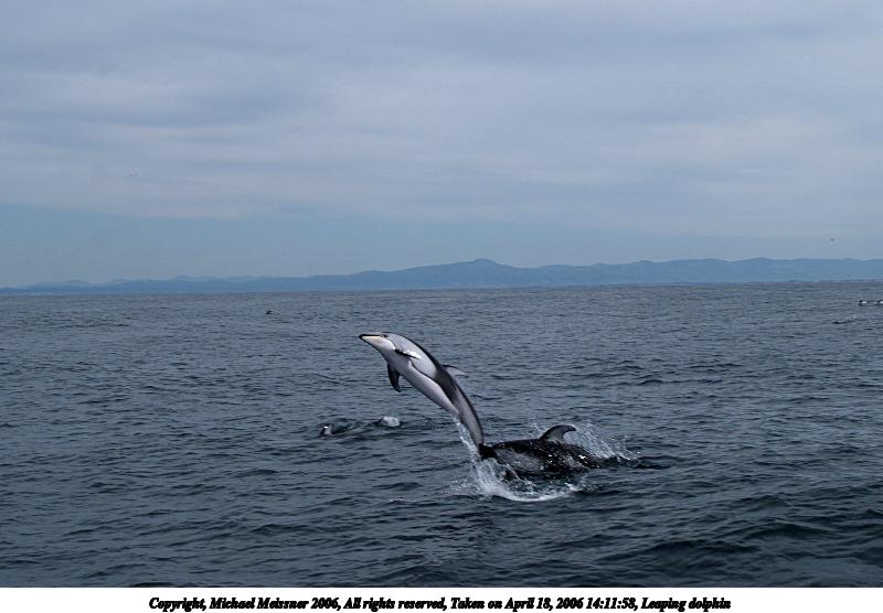 Picture #2: Leaping dolphin #2 800x556, 75,015 bytes (74K), (html file) Copyright, Michael Meissner 2006, All rights reserved Olympus E-1 camera with Olympus 11-22mm f/2.8-3.5 lens and Olympus EC-14 (1.4x) f/10.0, ISO 100, 1/320 sec, 31.0mm, auto mode, SHQ, matrix metering, +2 sharpening 35mm equivalent focal length 62.0mm, EC-14 Taken by Michael Meissner on April 18, 2006 14:11:58 Last modified on April 18, 2006 at 22:48 The file originally appeared in http://www.the-meissners.org/2006-small-albums/2006-ca-monterey/index.html. |