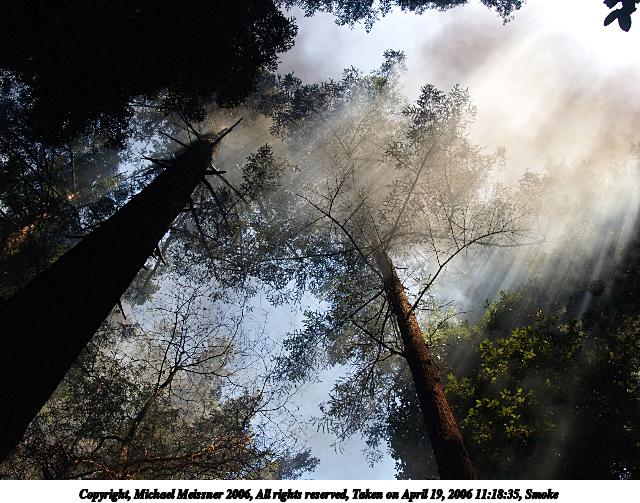 Picture #2: Smoke #2 640x503, 95,438 bytes (94K), (html file) Copyright, Michael Meissner 2006, All rights reserved Olympus E-1 camera with Olympus 11-22mm f/2.8-3.5 lens f/8.0, ISO 800, 1/250 sec, 19.0mm, auto mode, SHQ, matrix metering, +2 sharpening 35mm equivalent focal length 38.0mm Extra equipment used: neatimage Taken by Michael Meissner on April 19, 2006 11:18:35 Last modified on April 19, 2006 at 17:26 The file originally appeared in http://www.the-meissners.org/2006-small-albums/2006-ca-redwoods/index.html. |