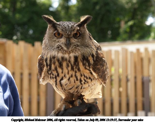 Picture #5: Surrender your mice 640x503, 64,332 bytes (63K), (html file) Copyright, Michael Meissner 2006, All rights reserved Olympus E-1 camera with Olympus 50-200mm f/2.8-3.5 lens f/5.0, ISO 400, 1/400 sec, 55.0mm, auto mode, SHQ, matrix metering, +2 sharpening, continous focus 35mm equivalent focal length 110.0mm Extra equipment used: noiseninja Taken by Michael Meissner on July 09, 2006 13:19:37 Last modified on July 09, 2006 at 16:16 The file originally appeared in http://www.the-meissners.org/2006-small-albums/2006-stonezoo/index.html. |
