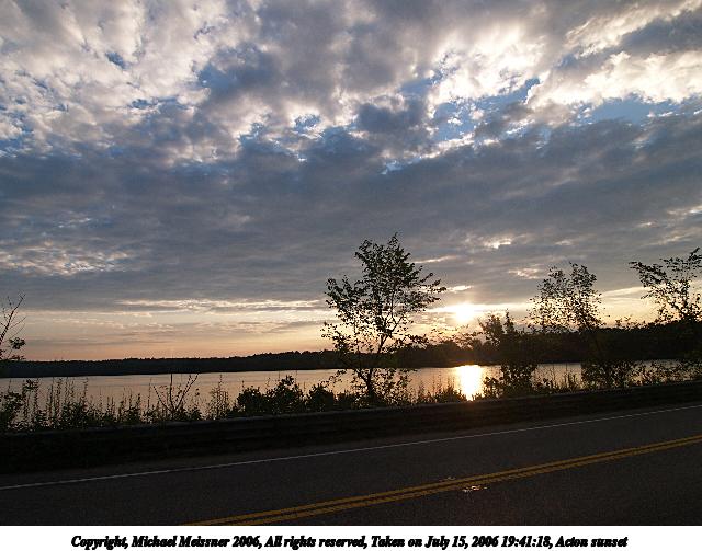 Picture #10: Acton sunset #3 640x503, 64,545 bytes (64K), (html file) Copyright, Michael Meissner 2006, All rights reserved Olympus E-1 camera with Olympus 11-22mm f/2.8-3.5 lens f/7.1, ISO 100, 1/200 sec, 11.0mm, auto mode, SHQ, spot metering, +2 sharpening, Exposure bracketing (shot 1) 35mm equivalent focal length 22.0mm Taken by Michael Meissner on July 15, 2006 19:43:06 Last modified on July 15, 2006 at 22:20 The file originally appeared in http://www.the-meissners.org/2006-small-albums/2006-07/index.html. |