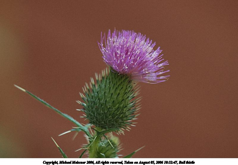 Picture #3: Bull thistle 800x556, 56,829 bytes (56K), (html file) Copyright, Michael Meissner 2006, All rights reserved Olympus E-1 camera with Olympus 50-200mm f/2.8-3.5 lens and Olympus EX-25 (macro) f/3.5, ISO 400, 1/160 sec, 200.0mm, auto mode, SHQ, matrix metering, +2 sharpening 35mm equivalent focal length 401.0mm, EX-25 Extra equipment used: noiseninja Taken by Michael Meissner on August 05, 2006 10:32:47 Last modified on August 05, 2006 at 19:27 The file originally appeared in http://www.the-meissners.org/2006-small-albums/2006-08/index.html. |