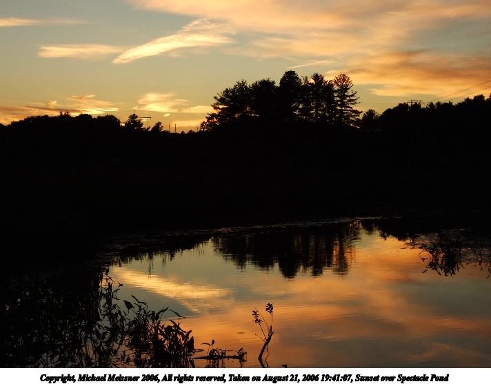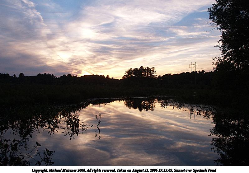 Picture #12: Sunset over Spectacle Pond #5 712x557, 52,019 bytes (51K), (html file) Copyright, Michael Meissner 2006, All rights reserved Fujifilm F30 f/5.6, ISO 100, 1/125 sec, 16.1mm, auto mode, sunset color, FINE, matrix metering 35mm equivalent focal length 73.0mm Taken by Michael Meissner on August 21, 2006 19:41:07 Last modified on August 21, 2006 at 22:42 The file originally appeared in http://www.the-meissners.org/2006-small-albums/2006-08/index.html. |