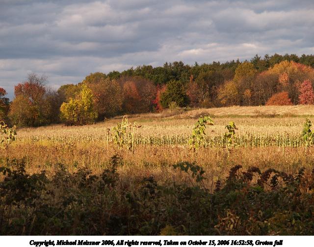 Picture #3: Groton fall 640x503, 69,698 bytes (69K), (html file) Copyright, Michael Meissner 2006, All rights reserved Olympus E-1 camera with Olympus 14-54mm f/2.8-3.5 lens f/5.0, ISO 100, 1/100 sec, 14.0mm, auto mode, SHQ, matrix metering, +2 sharpening, Exposure bracketing (shot 1) 35mm equivalent focal length 28.0mm Extra equipment used: polarizer Taken by Michael Meissner on October 15, 2006 16:11:43 Last modified on October 15, 2006 at 23:39 The file originally appeared in http://www.the-meissners.org/2006-small-albums/2006-10/index.html. |
