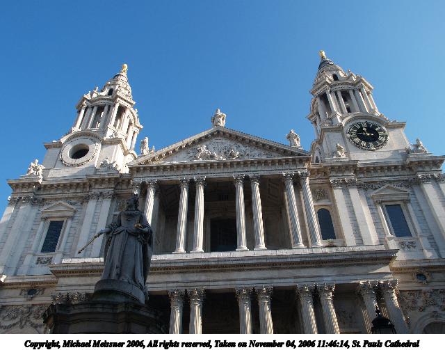 Picture #135: St. Pauls Cathedral #3 640x503, 58,661 bytes (58K), (html file) Copyright, Michael Meissner 2006, All rights reserved Olympus E-1 camera with Olympus 14-54mm f/2.8-3.5 lens f/7.1, ISO 100, 1/400 sec, 33.0mm, auto mode, SHQ, center weight metering, +2 sharpening 35mm equivalent focal length 66.0mm Taken by Michael Meissner on November 04, 2006 11:46:11 Last modified on November 14, 2006 at 06:30 |