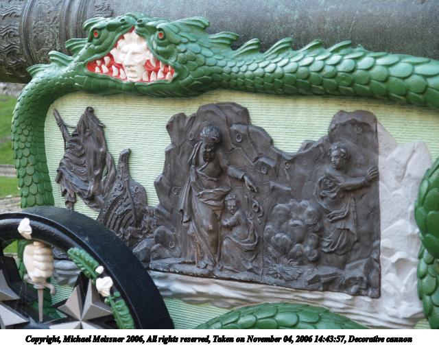 Picture #107: Decorative cannon detail 640x503, 64,304 bytes (63K), (html file) Copyright, Michael Meissner 2006, All rights reserved Olympus E-1 camera with Olympus 14-54mm f/2.8-3.5 lens f/3.5, ISO 100, 1/100 sec, 46.0mm, auto mode, SHQ, center weight metering, +2 sharpening 35mm equivalent focal length 92.0mm Taken by Michael Meissner on November 04, 2006 14:43:51 Last modified on November 14, 2006 at 06:31 |