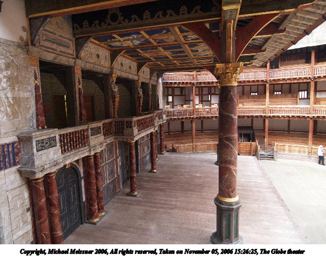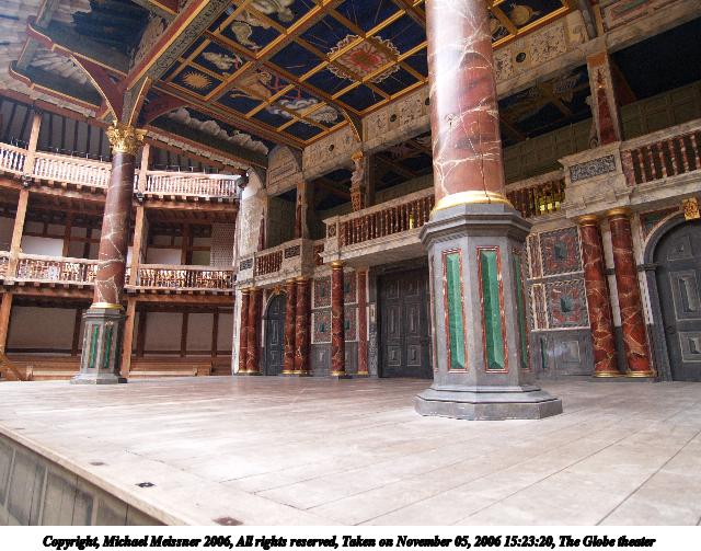 Picture #78: The Globe theater #8 640x503, 75,780 bytes (75K), (html file) Copyright, Michael Meissner 2006, All rights reserved Olympus E-1 camera with Olympus 11-22mm f/2.8-3.5 lens f/5.6, ISO 400, FL-50 flash, 1/30 sec, 16.0mm, aperture priority, SHQ, matrix metering, +2 sharpening 35mm equivalent focal length 32.0mm Taken by Michael Meissner on November 05, 2006 15:30:30 Last modified on November 14, 2006 at 06:35 |