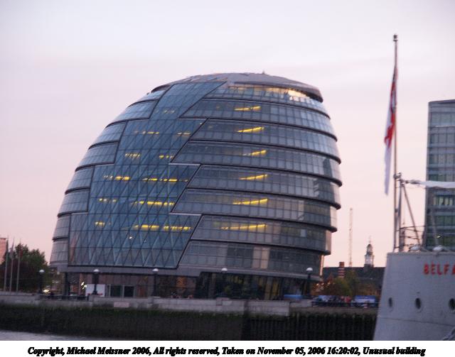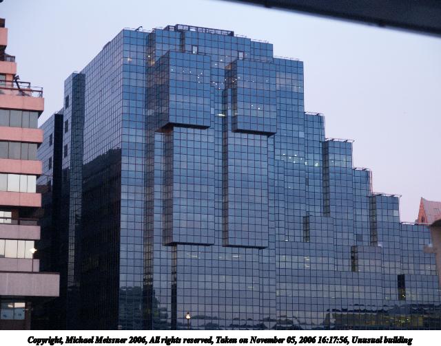 Picture #74: Unusual building #3 640x503, 51,417 bytes (51K), (html file) Copyright, Michael Meissner 2006, All rights reserved Olympus E-1 camera with Olympus 14-54mm f/2.8-3.5 lens f/3.5, ISO 400, 1/80 sec, 54.0mm, auto mode, SHQ, matrix metering, +2 sharpening 35mm equivalent focal length 108.0mm Taken by Michael Meissner on November 05, 2006 16:20:02 Last modified on November 14, 2006 at 06:35 |