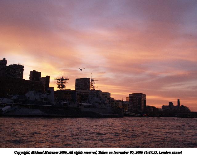 Picture #61: London sunset #4 640x503, 52,724 bytes (52K), (html file) Copyright, Michael Meissner 2006, All rights reserved Olympus E-1 camera with Olympus 14-54mm f/2.8-3.5 lens f/5.0, ISO 800, 1/100 sec, 14.0mm, auto mode, SHQ, matrix metering, +2 sharpening, Exposure bracketing (shot 1) 35mm equivalent focal length 28.0mm Taken by Michael Meissner on November 05, 2006 16:40:19 Last modified on November 14, 2006 at 06:36 |