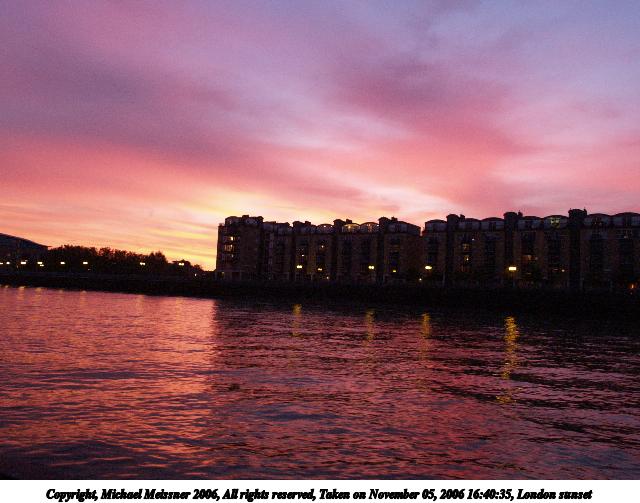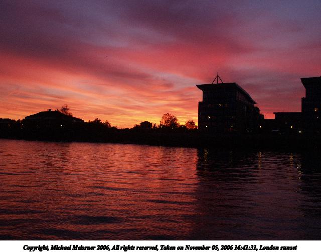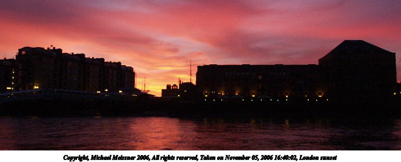 Picture #59: London sunset #6 640x503, 54,436 bytes (54K), (html file) Copyright, Michael Meissner 2006, All rights reserved Olympus E-1 camera with Olympus 14-54mm f/2.8-3.5 lens f/4.5, ISO 400, 1/100 sec, 19.0mm, auto mode, SHQ, matrix metering, +2 sharpening, Exposure bracketing (shot 1) 35mm equivalent focal length 38.0mm Taken by Michael Meissner on November 05, 2006 16:41:31 Last modified on November 14, 2006 at 06:37 |