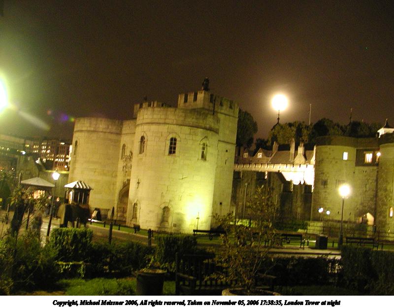Picture #58: London Tower at night 800x623, 79,864 bytes (78K), (html file) Copyright, Michael Meissner 2006, All rights reserved Olympus C-2100UZ camera f/2.8, ISO 400, 1/2 sec, 7.0mm, auto mode, SHQ, cloudy, matrix metering 35mm equivalent focal length 39.0mm Taken by Michael Meissner on November 05, 2006 17:38:35 Last modified on November 14, 2006 at 06:41 |