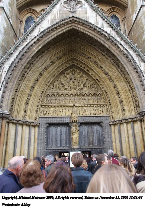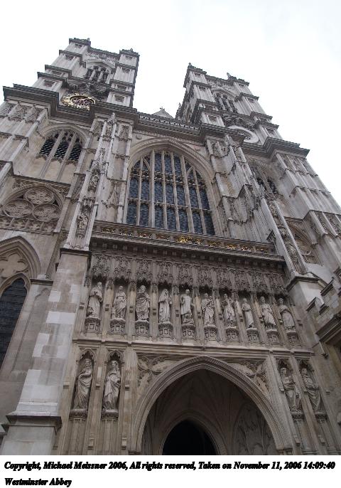 Picture #49: Westminster Abbey #3 480x686, 89,769 bytes (88K), (html file) Copyright, Michael Meissner 2006, All rights reserved Olympus E-1 camera with Olympus 14-54mm f/2.8-3.5 lens f/4.0, ISO 100, 1/80 sec, 14.0mm, auto mode, SHQ, spot metering, +2 sharpening 35mm equivalent focal length 28.0mm Taken by Michael Meissner on November 11, 2006 12:21:39 Last modified on November 14, 2006 at 06:39 |