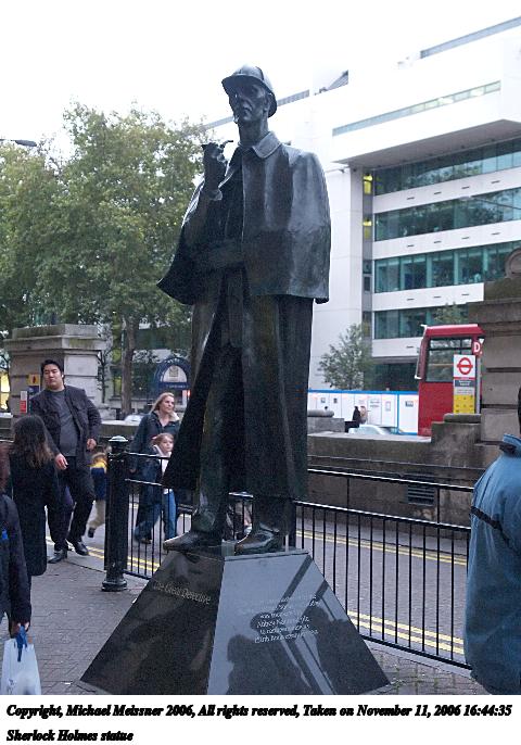 Picture #15: Sherlock Holmes characters 640x503, 76,946 bytes (76K), (html file) Copyright, Michael Meissner 2006, All rights reserved Olympus E-1 camera with Olympus 14-54mm f/2.8-3.5 lens f/5.6, ISO 100, FL-50 flash, 1/30 sec, 14.0mm, aperture priority, SHQ, matrix metering, +2 sharpening 35mm equivalent focal length 28.0mm Taken by Michael Meissner on November 11, 2006 17:11:12 Last modified on November 14, 2006 at 06:39 |