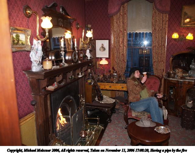 Picture #17: Having a pipe by the fire 640x503, 76,715 bytes (75K), (html file) Copyright, Michael Meissner 2006, All rights reserved Olympus E-1 camera with Olympus 14-54mm f/2.8-3.5 lens f/2.8, ISO 100, FL-50 flash, 1/30 sec, 14.0mm, auto mode, SHQ, matrix metering, +2 sharpening 35mm equivalent focal length 28.0mm Taken by Michael Meissner on November 11, 2006 17:08:20 Last modified on November 14, 2006 at 06:39 |