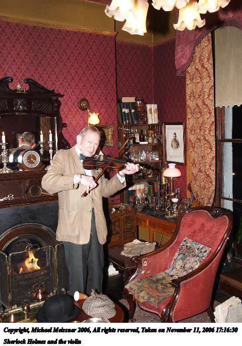 Picture #8: Sherlock Holmes and the violin 480x686, 90,512 bytes (89K), (html file) Copyright, Michael Meissner 2006, All rights reserved Olympus E-1 camera with Olympus 14-54mm f/2.8-3.5 lens f/5.6, ISO 200, FL-50 flash, 1/40 sec, 19.0mm, aperture priority, SHQ, matrix metering, +2 sharpening 35mm equivalent focal length 38.0mm Taken by Michael Meissner on November 11, 2006 17:16:30 Last modified on November 14, 2006 at 06:39 |