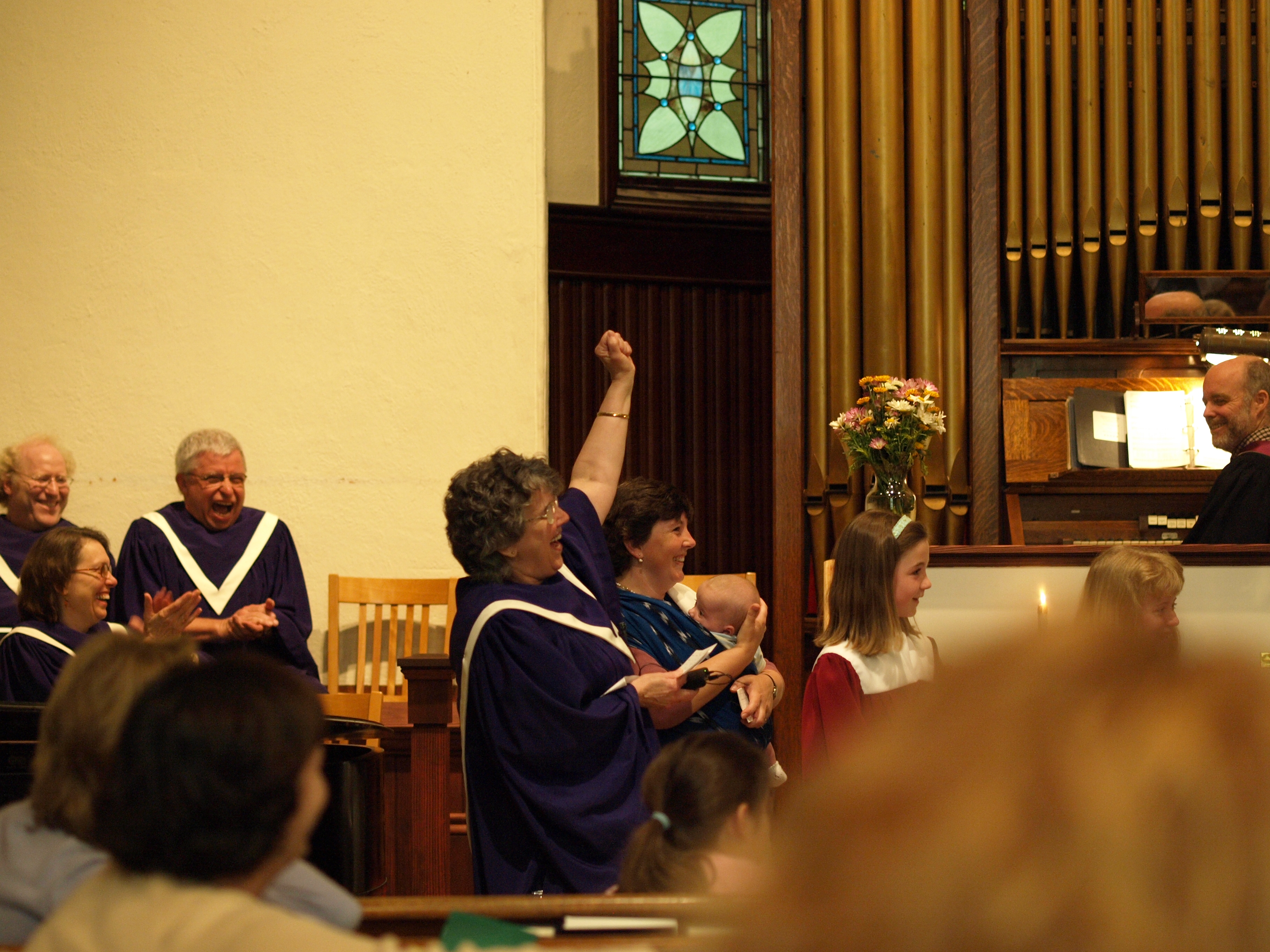 Picture #11: UCC 50th anniversary celebration service #12 Small: 912x707, 149,993 bytes (147K), (html file) Large: 3648x2736, 6,701,525 bytes (6.4M), (html file) Copyright, Michael Meissner 2007, All rights reserved Olympus E-510 camera with Olympus 50mm f/2.0 lens f/2.0, ISO 400, 1/60 sec, 50.0mm, auto mode, vivid color, high key, SHQ, matrix metering, -2 sharpening, image stabilization 35mm equivalent focal length 100.0mm Taken by Michael Meissner on June 24, 2007 16:02:23 Last modified on June 24, 2007 at 16:02 This picture is one of my favorites. |