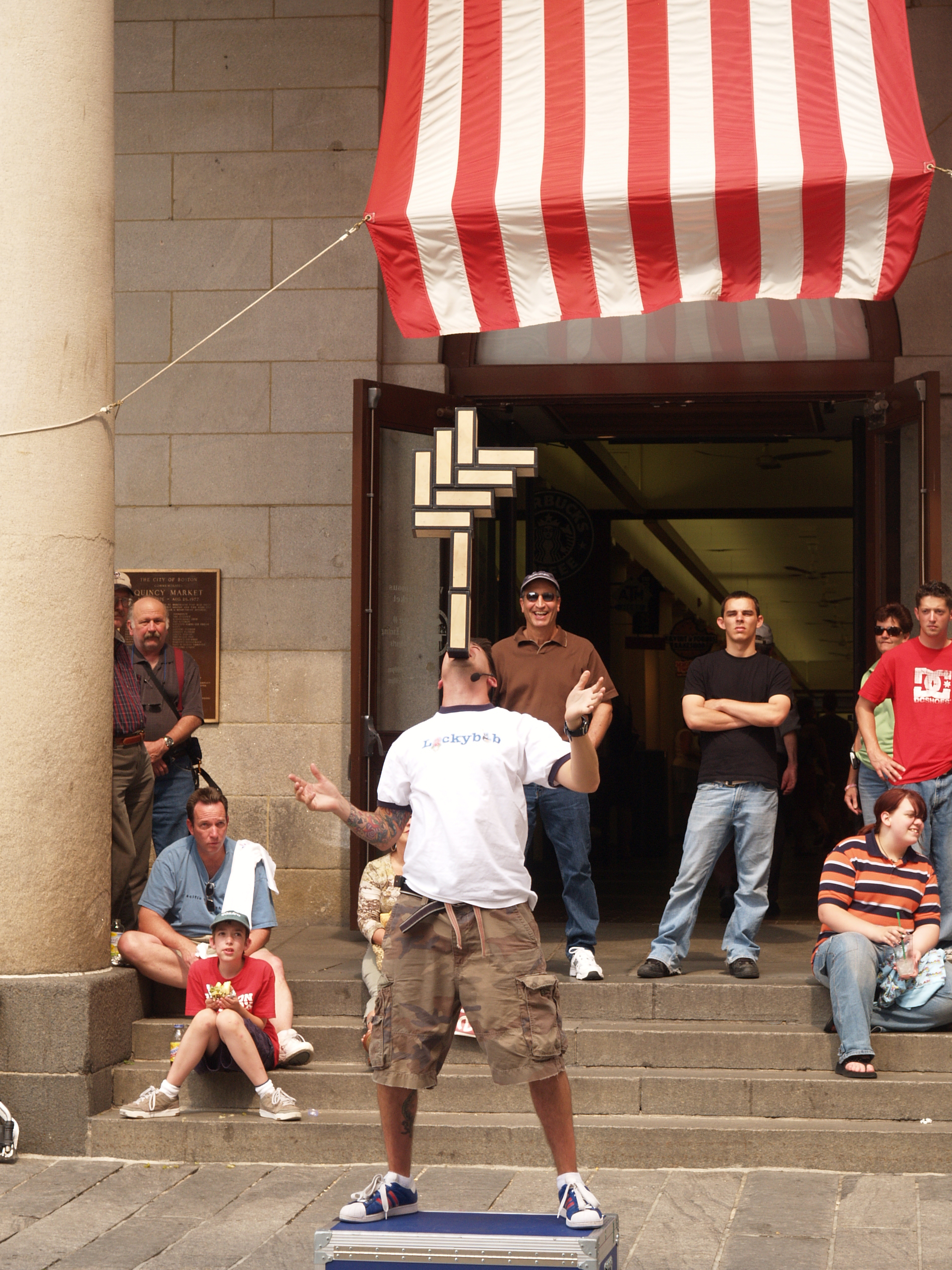 Picture #48: Hat balancing Small: 480x686, 72,807 bytes (72K), (html file) Large: 1920x2560, 4,073,565 bytes (3.9M), (html file) Copyright, Michael Meissner 2007, All rights reserved Olympus E-1 camera with Olympus 14-54mm f/2.8-3.5 lens f/5.6, ISO 200, 1/400 sec, 44.0mm, auto mode, SHQ, manual wb, matrix metering, +2 sharpening 35mm equivalent focal length 88.0mm Programs used: rotate Taken by Michael Meissner on June 17, 2007 15:06:07 Last modified on June 17, 2007 at 15:06 |