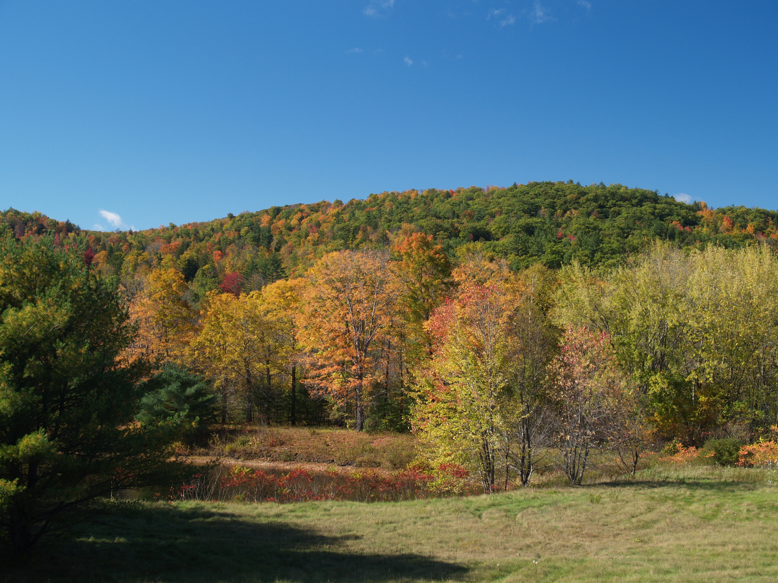 Picture #48: Harvard, MA in fall Small: 800x423, 73,178 bytes (72K), (html file) Large: 2400x1200, 3,447,702 bytes (3.3M), (html file) Copyright, Michael Meissner 2007, All rights reserved Olympus E-1 camera with Olympus 14-54mm f/2.8-3.5 lens f/4.0, ISO 100, 1/125 sec, 33.0mm, auto mode, SHQ, matrix metering, +2 sharpening 35mm equivalent focal length 66.0mm Extra equipment used: polarizer Programs used: gimp Taken by Michael Meissner on October 21, 2007 17:19:28 Last modified on October 21, 2007 at 17:19 |