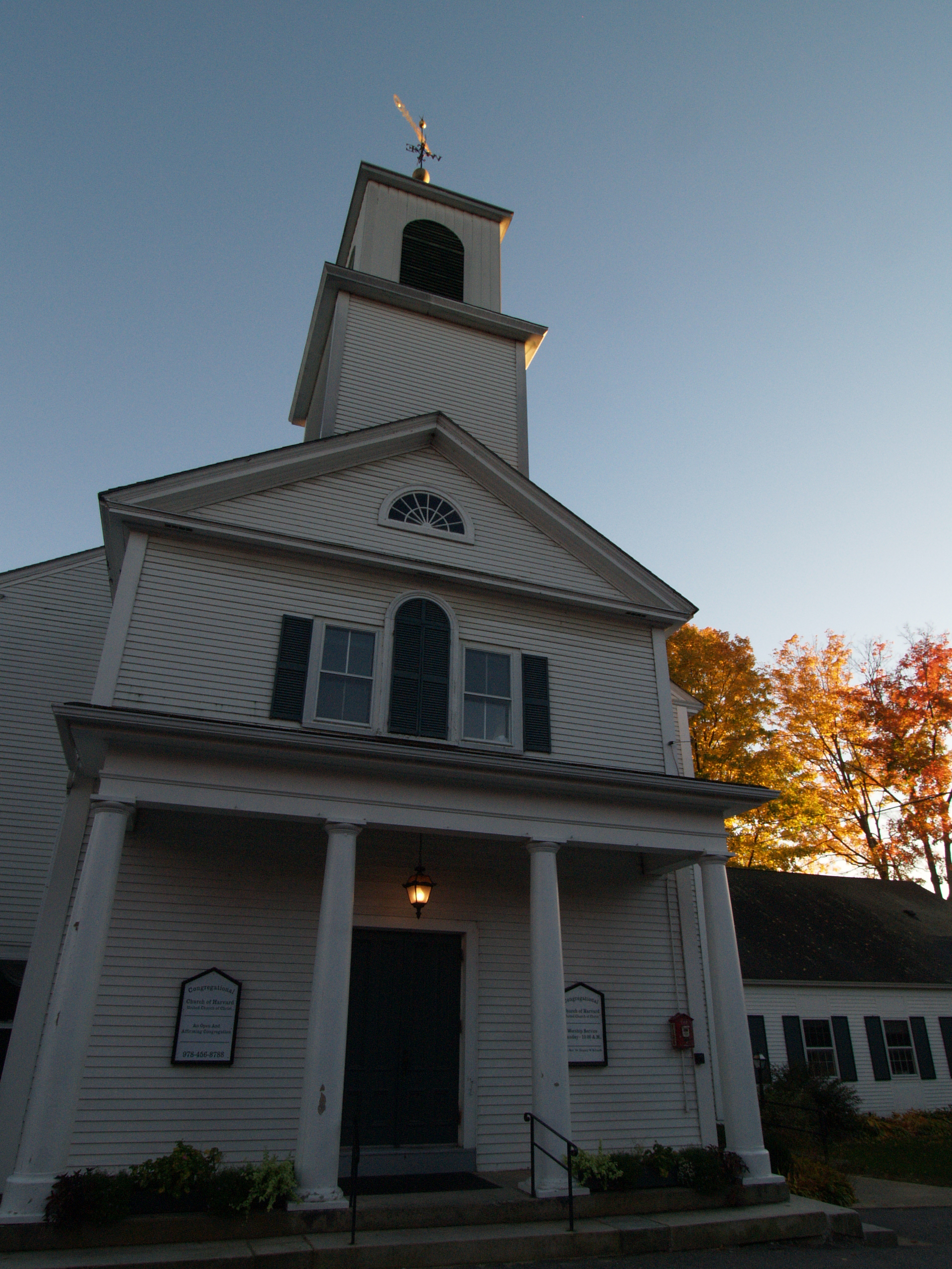 Picture #2: Harvard, MA church in the fall #2 Small: 684x935, 284,280 bytes (278K), (html file) Large: 2736x3648, 9,545,730 bytes (9.1M), (html file) Copyright, Michael Meissner 2007, All rights reserved Olympus E-510 camera with Olympus 50-200mm f/2.8-3.5 lens f/5.6, ISO 100, 1/500 sec, 50.0mm, auto mode, natural color, SHQ, matrix metering, auto + manual focus, image stabilization, noise reduction, noise filter low 35mm equivalent focal length 100.0mm Programs used: rotate Taken by Michael Meissner on October 28, 2007 15:03:46 Last modified on October 28, 2007 at 15:03 |