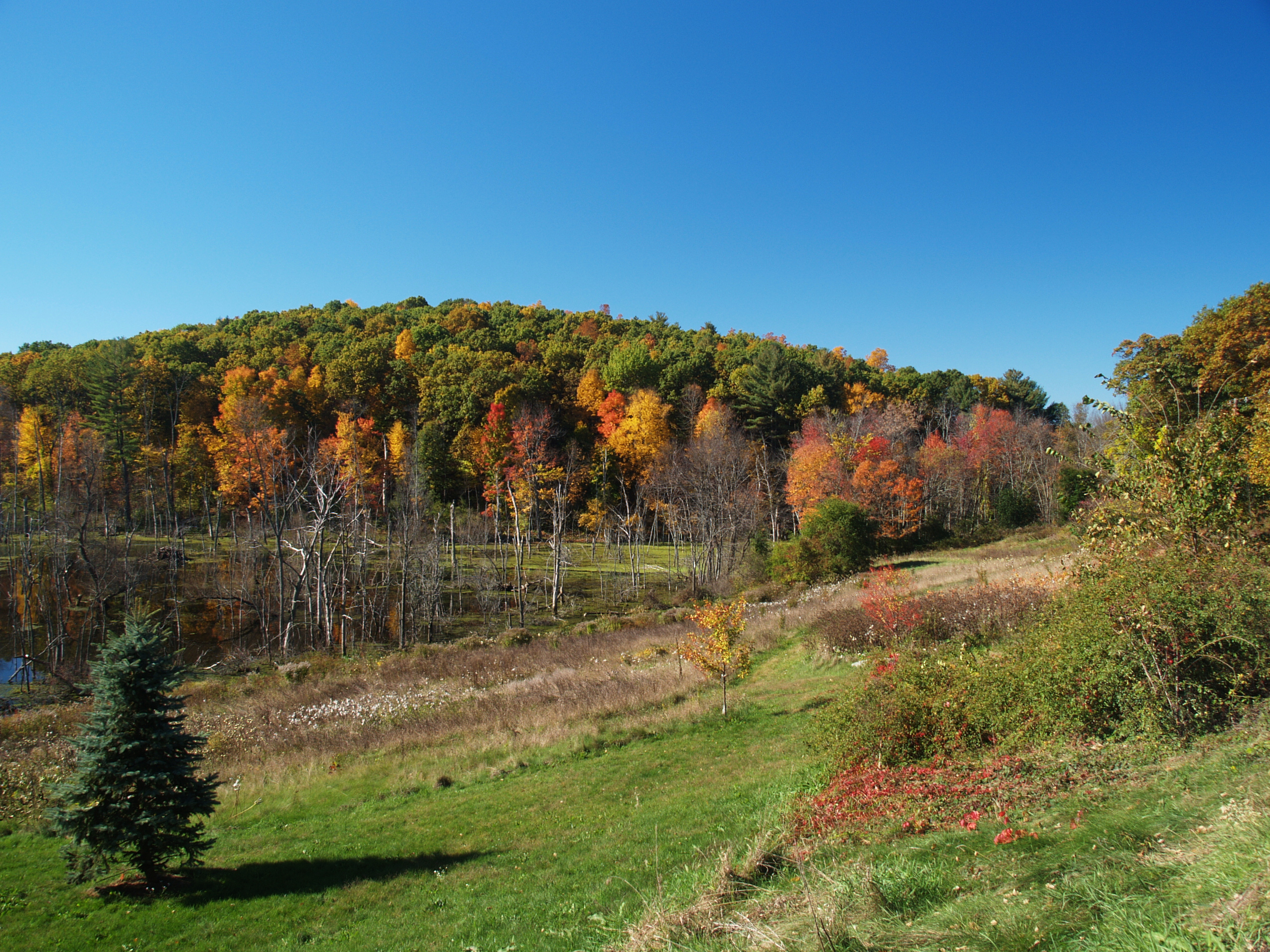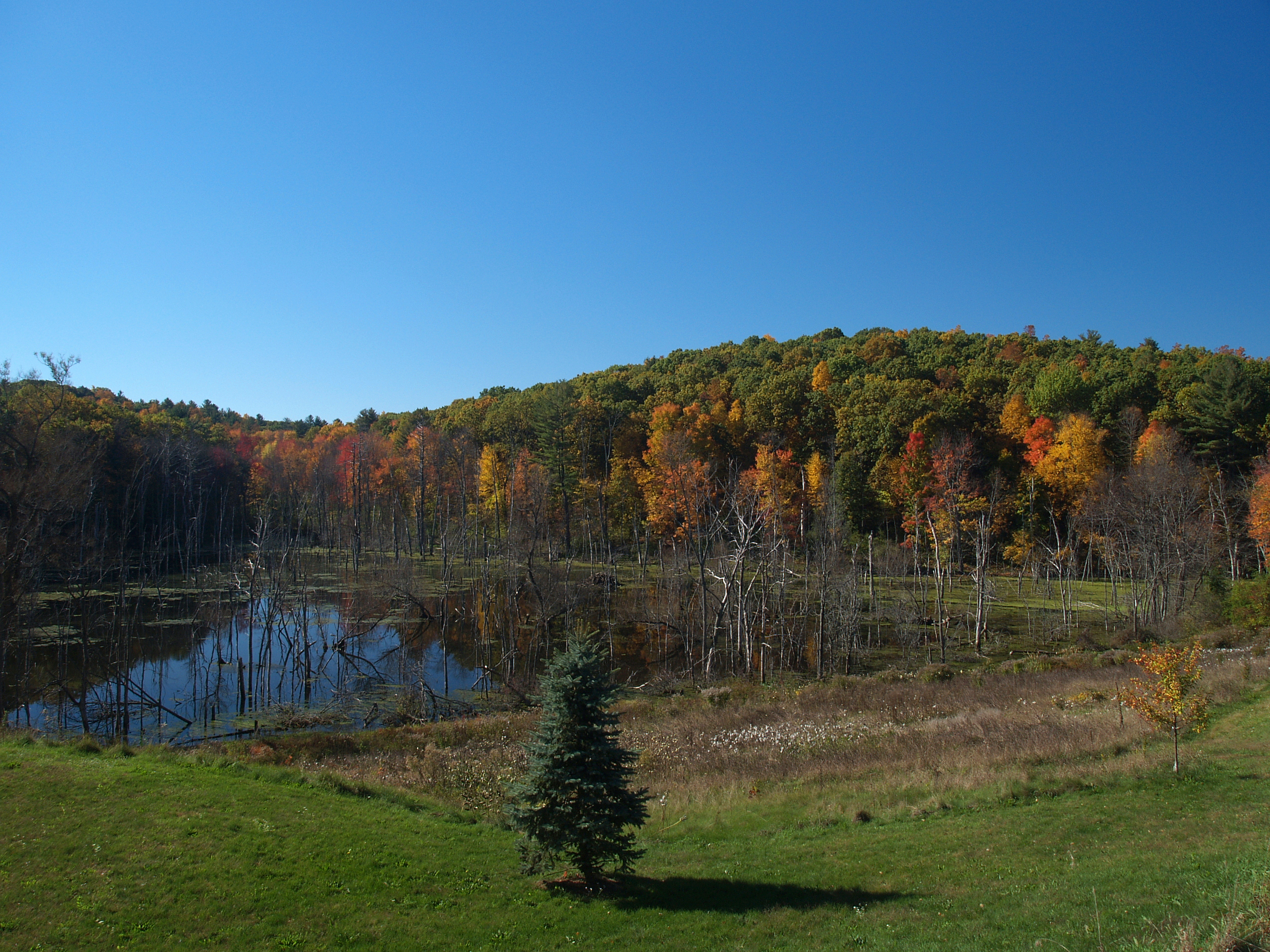 Picture #8: Groton, MA fall #6 Small: 640x503, 75,265 bytes (74K), (html file) Large: 2560x1920, 5,359,146 bytes (5.1M), (html file) Copyright, Michael Meissner 2007, All rights reserved Olympus E-1 camera with Olympus 14-54mm f/2.8-3.5 lens f/6.3, ISO 100, 1/160 sec, 14.0mm, auto mode, SHQ, matrix metering, bias -1.3, +2 sharpening, Exposure bracketing (shot 2) 35mm equivalent focal length 28.0mm Extra equipment used: polarizer Programs used: gimp Taken by Michael Meissner on October 22, 2007 11:02:05 Last modified on October 22, 2007 at 11:02 |