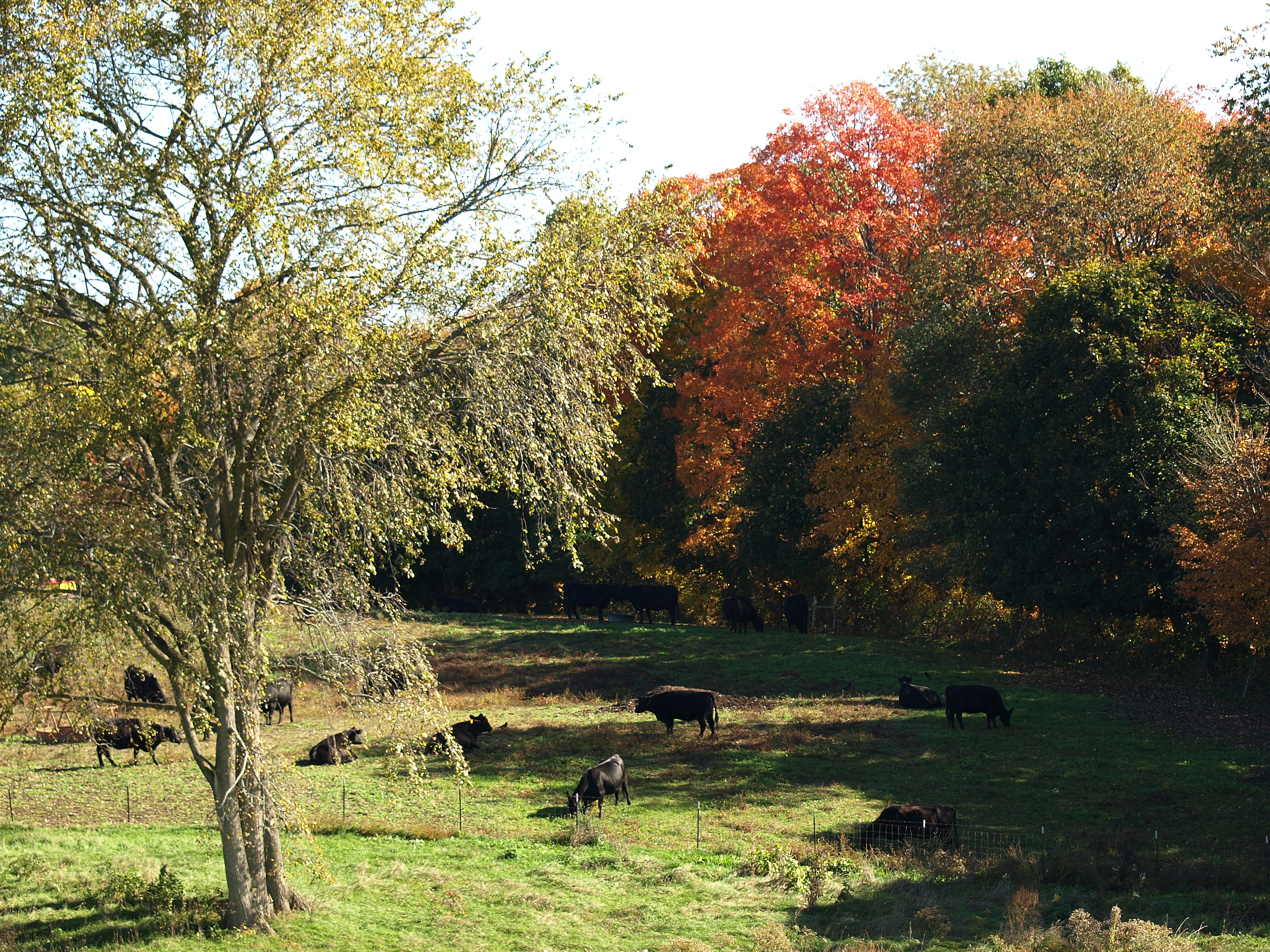 Picture #15: Cows in fall Small: 800x623, 202,115 bytes (198K), (html file) Large: 3200x2400, 9,899,392 bytes (9.4M), (html file) Copyright, Michael Meissner 2007, All rights reserved Olympus E-510 camera with Olympus 50-200mm f/2.8-3.5 lens f/4.0, ISO 100, 1/250 sec, 67.0mm, auto mode, natural color, SHQ, cloudy (6000K), matrix metering, image stabilization, noise filter low, exposure bracketing (shot 1) 35mm equivalent focal length 134.0mm Extra equipment used: polarizer Programs used: gimp Taken by Michael Meissner on October 22, 2007 11:03:32 Last modified on October 22, 2007 at 11:03 |