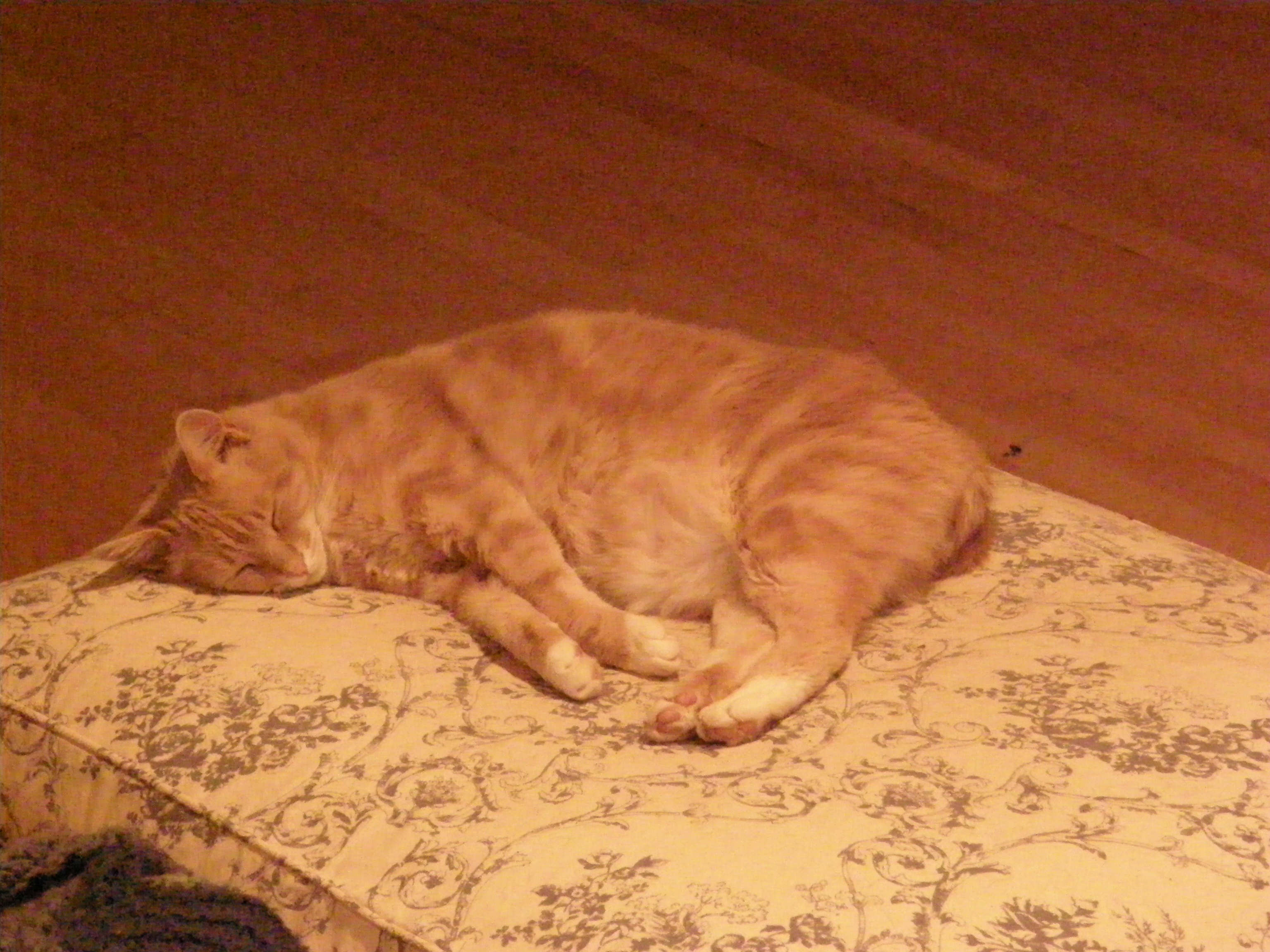 Picture #34: Sleeping Abba Small: 768x599, 100,426 bytes (99K), (html file) Large: 3072x2304, 3,497,598 bytes (3.3M), (html file) Copyright, Michael Meissner 2007, All rights reserved Olympus SP-550UZ camera f/4.2, ISO 400, flash, 1/125 sec, 21.5mm, auto mode, HQ, matrix metering, +1 sharpening 35mm equivalent focal length 129.0mm Taken by Michael Meissner on November 09, 2007 10:17:06 Last modified on November 09, 2007 at 09:17 |