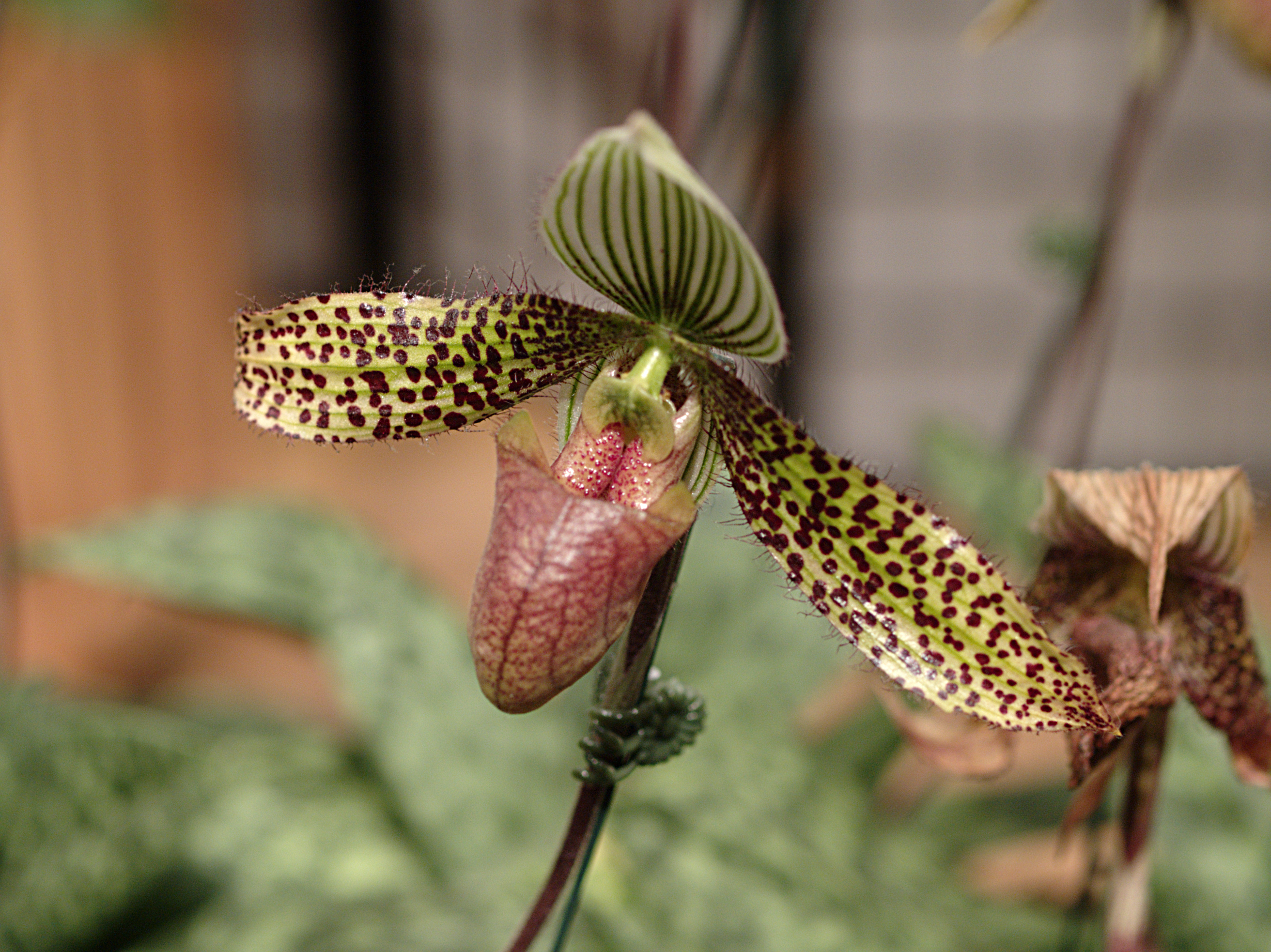 Picture #3: Ladyslipper (Hybtid Golden Agnes) Small: 492x702, 55,375 bytes (55K), (html file) Large: 1966x2624, 3,150,285 bytes (3.0M), (html file) Copyright, Michael Meissner 2007, All rights reserved Olympus E-1 camera ISO 200, 1/1000 sec, auto mode, SHQ, matrix metering, bias -0.3, +2 sharpening 35mm equivalent focal length 0.0mm Extra equipment used: Olympus 50mm macro lens Programs used: NoiseNinja, RAW, gimp Taken by Michael Meissner on March 24, 2007 19:07:09 Last modified on March 27, 2007 at 00:54 This picture is one of my favorites. |
