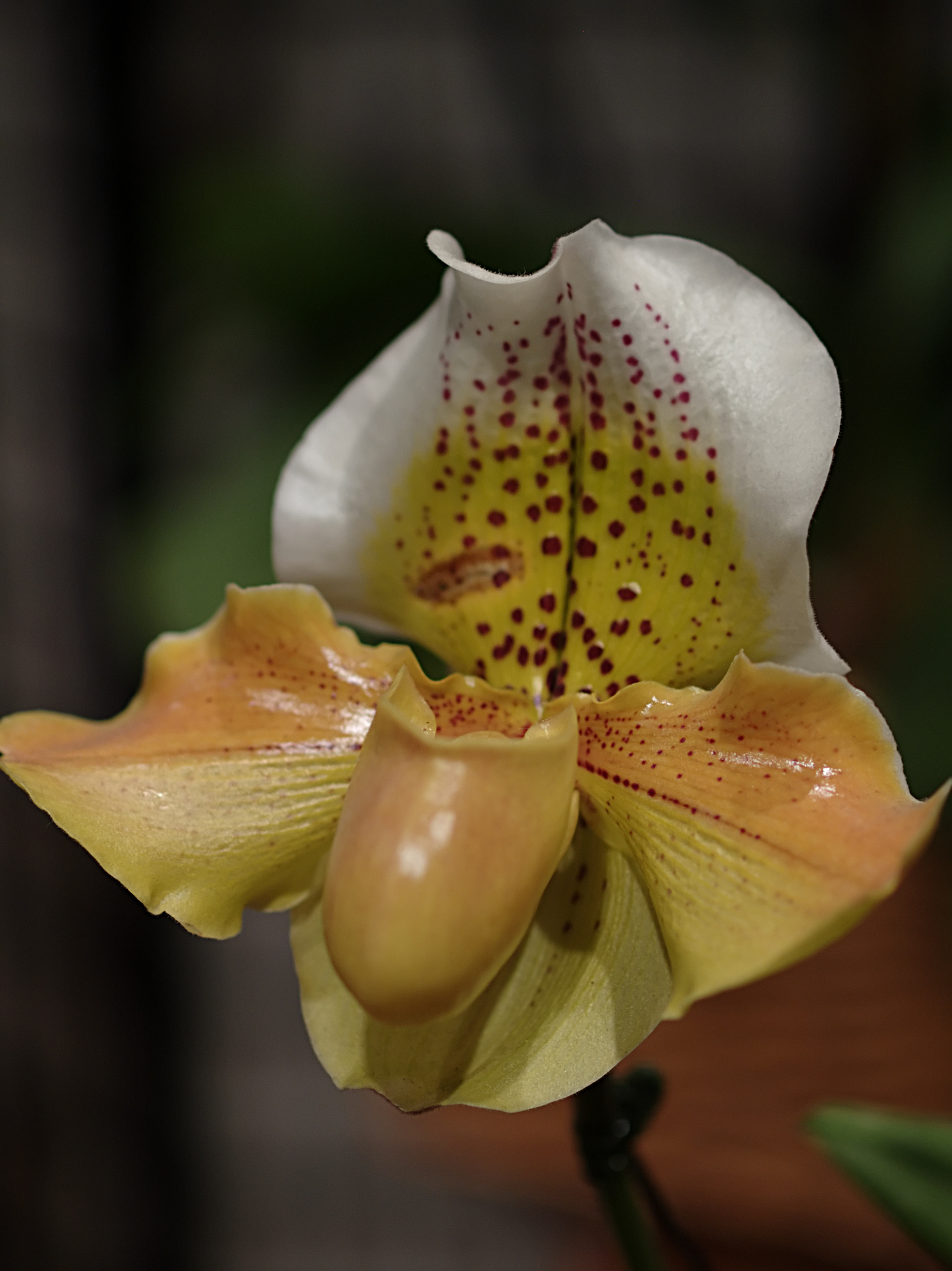 Picture #5: Ladyslipper (Hybtid Golden Agnes) #2 Small: 656x515, 59,861 bytes (59K), (html file) Large: 2624x1966, 3,247,789 bytes (3.1M), (html file) Copyright, Michael Meissner 2007, All rights reserved Olympus E-1 camera with Olympus 50mm f/2.0 lens f/3.2, ISO 200, 1/320 sec, 50.0mm, auto mode, SHQ, matrix metering, bias -0.3, +2 sharpening 35mm equivalent focal length 100.0mm Programs used: NoiseNinja, RAW, gimp Taken by Michael Meissner on March 24, 2007 19:07:39 Last modified on March 24, 2007 at 19:07 |