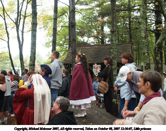 Picture #5: Royal court show #5 Thumb: 320x240, 26,548 bytes (26K) Small: 640x503, 65,070 bytes (64K), (html file) Large: 2560x1920, 3,444,099 bytes (3.3M), (html file) Copyright, Michael Meissner 2007, All rights reserved Olympus E-1 camera with Olympus 14-54mm f/2.8-3.5 lens f/4.5, ISO 400, 1/160 sec, 38.0mm, auto mode, SHQ, matrix metering, +2 sharpening 35mm equivalent focal length 76.0mm Taken by Michael Meissner on October 08, 2007 13:12:39 Last modified on October 08, 2007 at 13:12 |