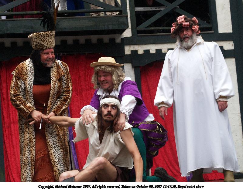 Picture #9: Royal court show #9 Thumb: 320x240, 31,684 bytes (31K) Small: 640x503, 82,613 bytes (81K), (html file) Large: 2560x1920, 3,437,880 bytes (3.3M), (html file) Copyright, Michael Meissner 2007, All rights reserved Olympus E-1 camera with Olympus 14-54mm f/2.8-3.5 lens f/4.0, ISO 400, 1/125 sec, 37.0mm, auto mode, SHQ, matrix metering, +2 sharpening 35mm equivalent focal length 74.0mm Taken by Michael Meissner on October 08, 2007 13:14:38 Last modified on October 08, 2007 at 13:14 |