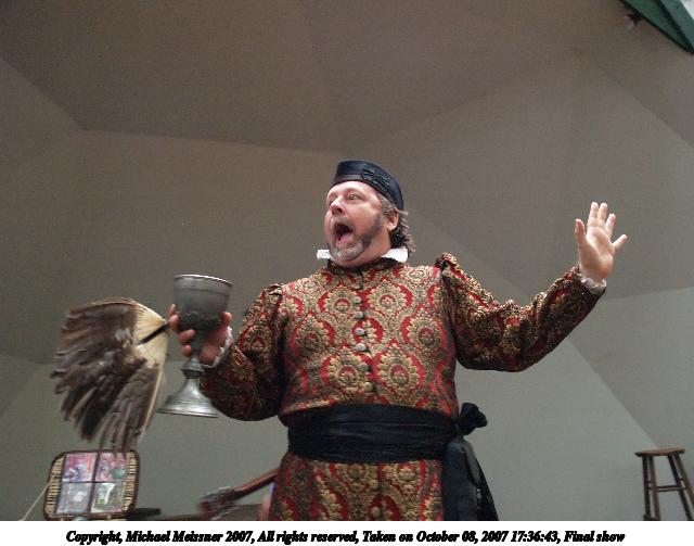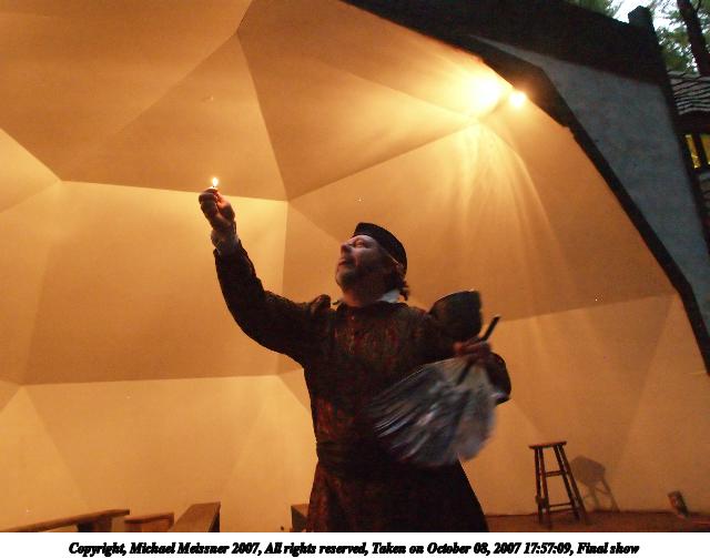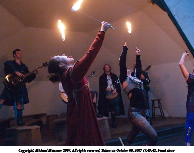 Picture #8: Final show #8 Thumb: 320x240, 30,285 bytes (30K) Small: 640x503, 66,520 bytes (65K), (html file) Large: 2560x1920, 4,155,874 bytes (4.0M), (html file) Copyright, Michael Meissner 2007, All rights reserved Olympus E-1 camera with Olympus 11-22mm f/2.8-3.5 lens f/2.8, ISO 1600, 1/20 sec, 11.0mm, auto mode, SHQ, matrix metering, +2 sharpening 35mm equivalent focal length 22.0mm Programs used: gimp, neatimage Taken by Michael Meissner on October 08, 2007 18:00:35 Last modified on October 08, 2007 at 18:00 |
