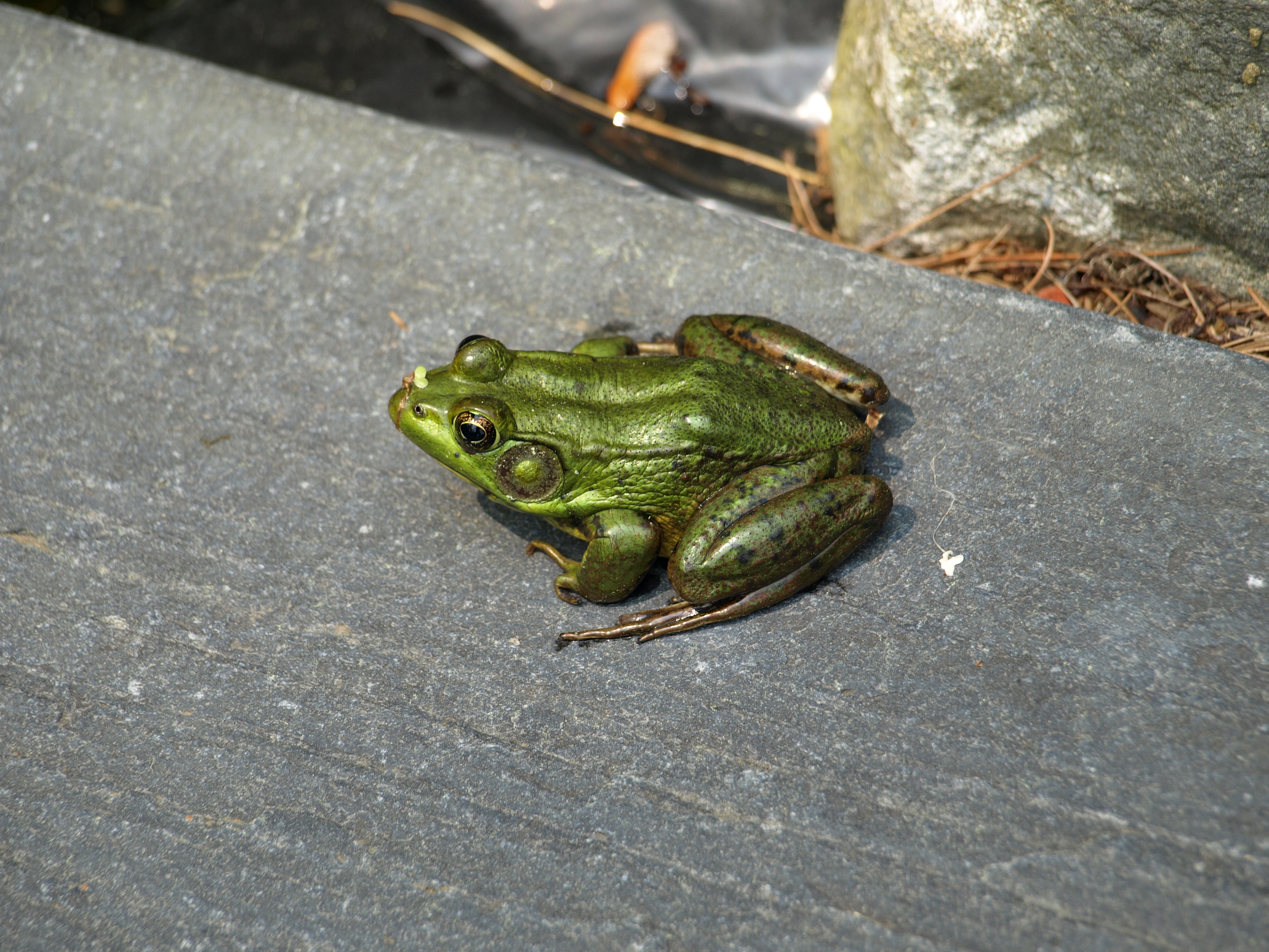 Picture #4: Frog #3 Small: 912x707, 136,610 bytes (134K), (html file) Large: 3648x2736, 7,157,244 bytes (6.8M), (html file) Copyright, Michael Meissner 2007, All rights reserved Olympus E-510 camera with Olympus 40-150mm f/4.0-5.6 lens f/5.6, ISO 100, 1/160 sec, 150.0mm, auto mode, natural color, SHQ, matrix metering, image stabilization, noise filter low 35mm equivalent focal length 301.0mm Taken by Michael Meissner on June 02, 2007 14:26:03 Last modified on June 02, 2007 at 14:26 This picture is one of my favorites. |