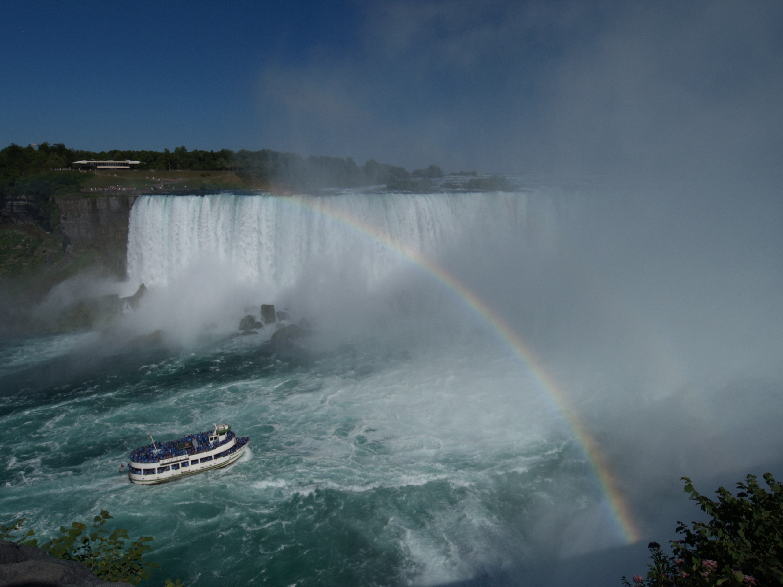 Picture #46: Niagara Falls from Maid of the Mist #13 Thumb: 480x240, 25,528 bytes (25K) Small: 800x423, 39,290 bytes (39K), (html file) Large: 2400x1200, 1,330,023 bytes (1.3M), (html file) Copyright, Michael Meissner 2007, All rights reserved Olympus E-1 camera with Olympus 14-54mm f/2.8-3.5 lens f/9.0, ISO 100, 1/400 sec, 19.0mm, auto mode, SHQ, matrix metering, +2 sharpening 35mm equivalent focal length 38.0mm Programs used: gimp, neatimage Taken by Michael Meissner on August 14, 2007 14:19:33 Last modified on August 14, 2007 at 14:19 This picture is one of my favorites. |