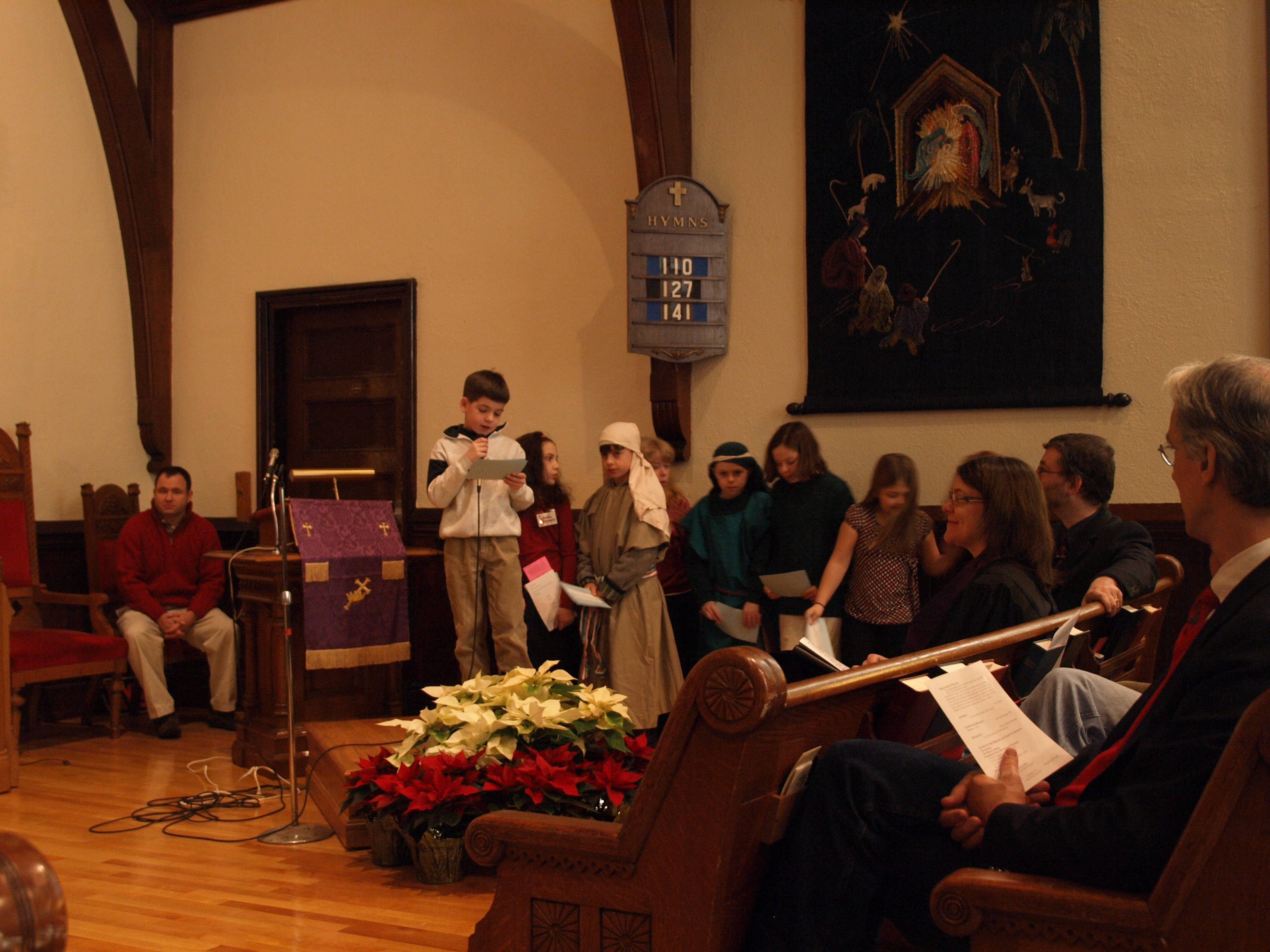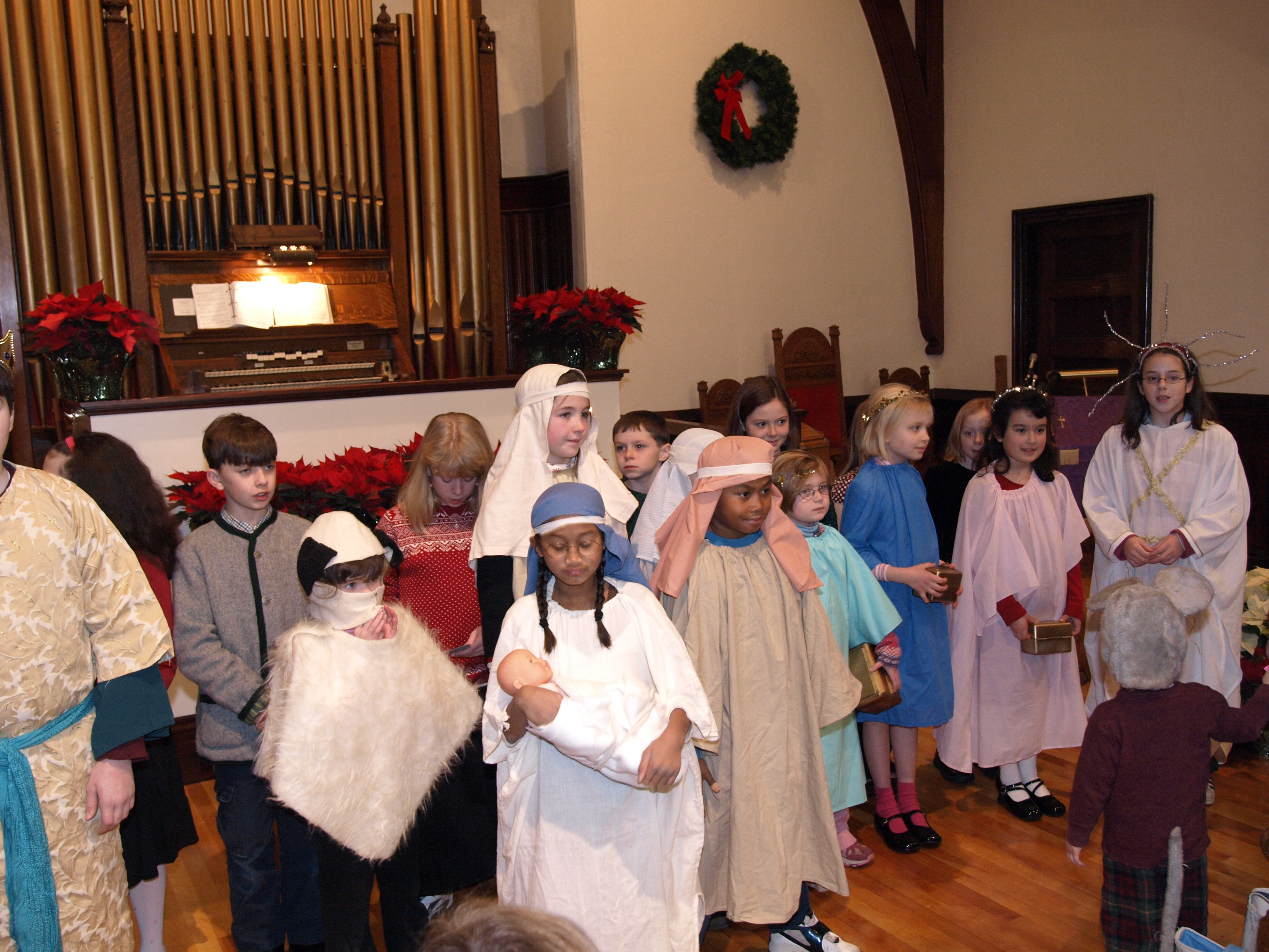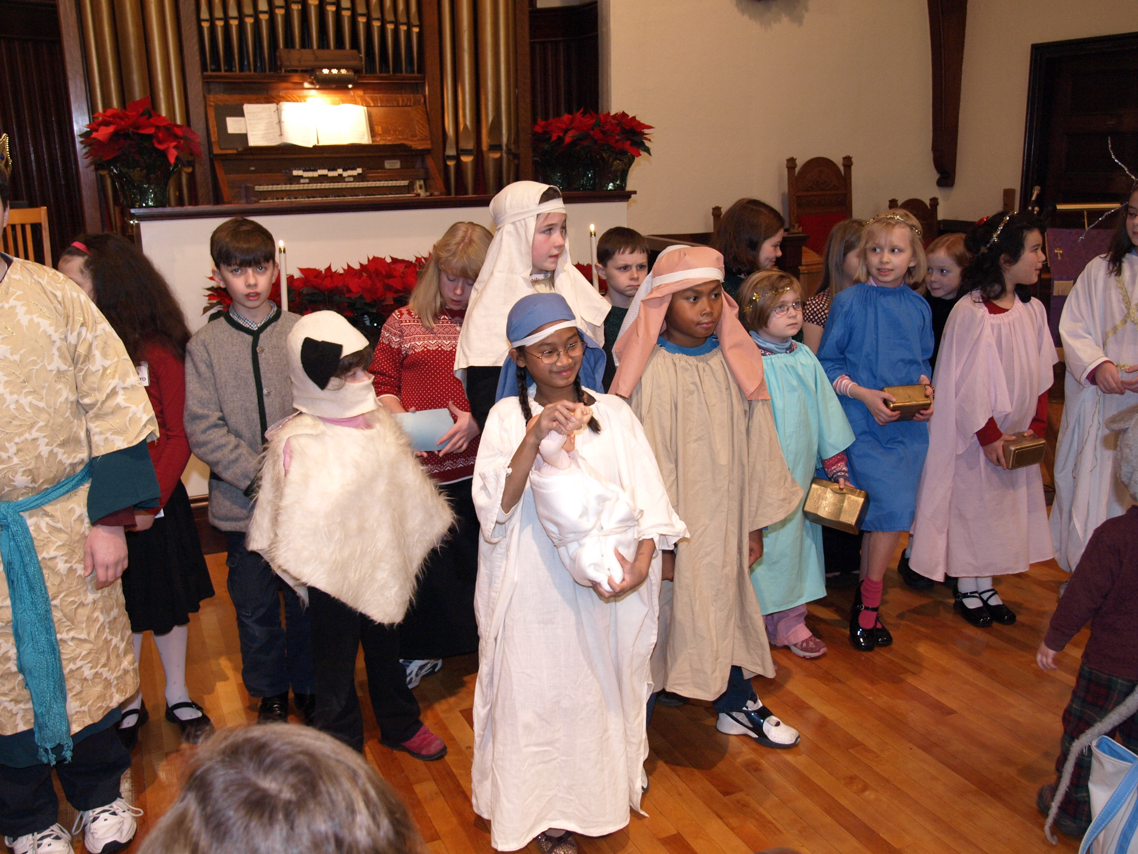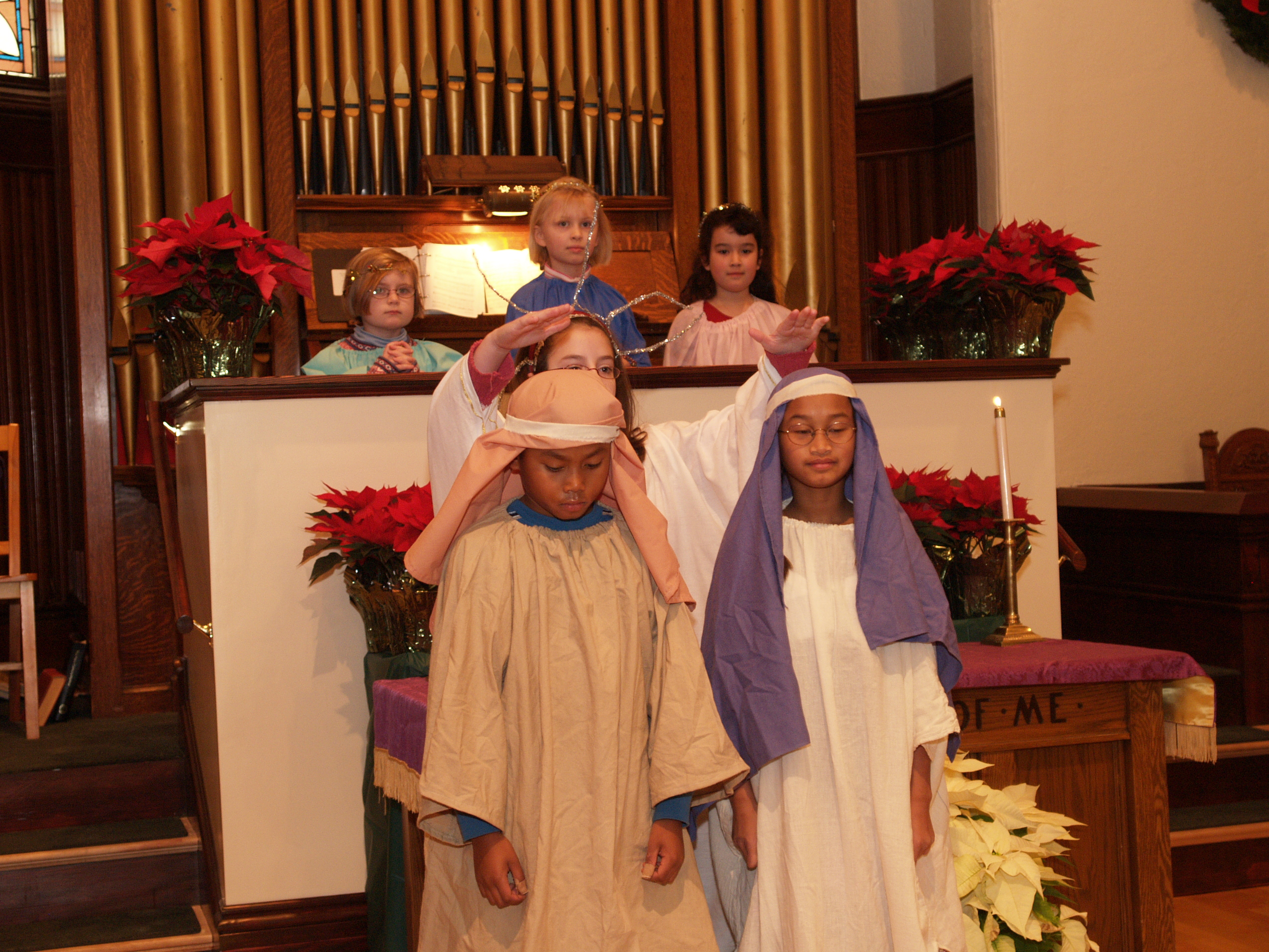 Picture #14: The magi present their gifts Small: 640x503, 83,576 bytes (82K), (html file) Large: 2560x1920, 4,530,668 bytes (4.3M), (html file) Copyright, Michael Meissner 2007, All rights reserved Olympus E-1 camera with Olympus 14-54mm f/2.8-3.5 lens f/2.8, ISO 400, FL-50 flash, 1/30 sec, 14.0mm, auto mode, SHQ, matrix metering, +2 sharpening, continous focus 35mm equivalent focal length 28.0mm Extra equipment used: FL-50 flash Programs used: gimp Taken by Michael Meissner on December 23, 2007 11:11:24 Last modified on December 23, 2007 at 22:35 |
